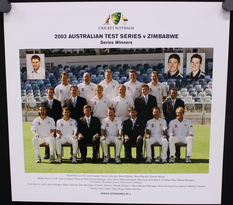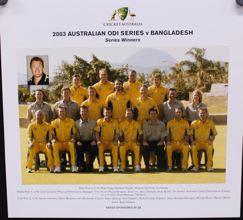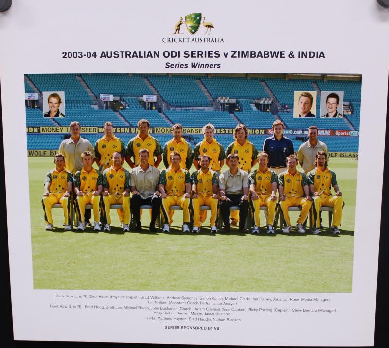 ODI v Bangladesh, 2003 v Zimbabwe, 2003-04 v India, 2003-04 ODI v Zimbabwe & India, 2004 Tour of Sri Lanka, 2004 ODI Tour of Sri Lanka, 2004 ODI Tour of Zimbabwe, all 35x33cm, Superb condition. Ex Jason Gillespie collection.