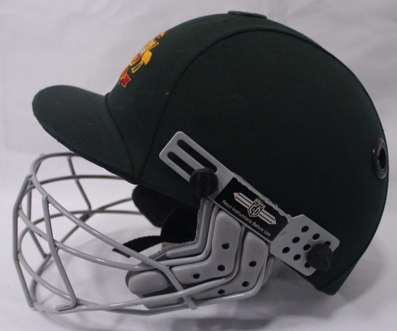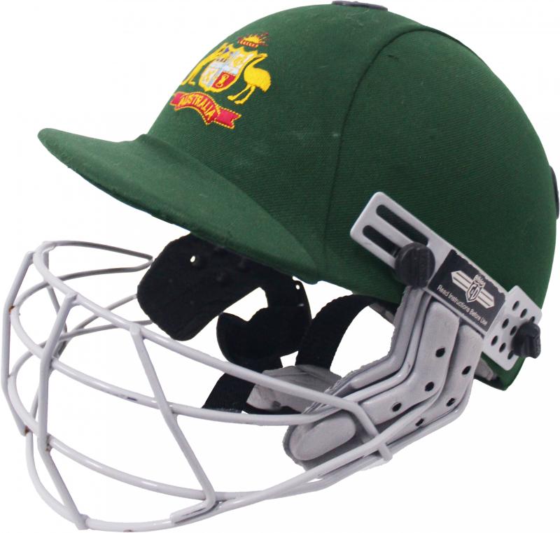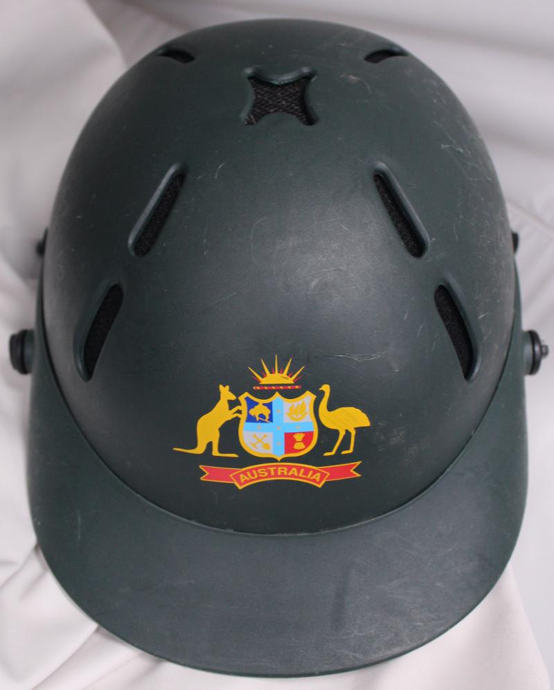 JASON GILLESPIE: Australian Test Helmet with Australian Coat-of-Arms embroidered on front, '12/99 Australia' type, made by Albion