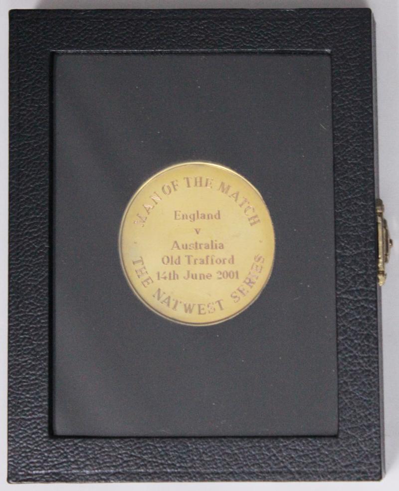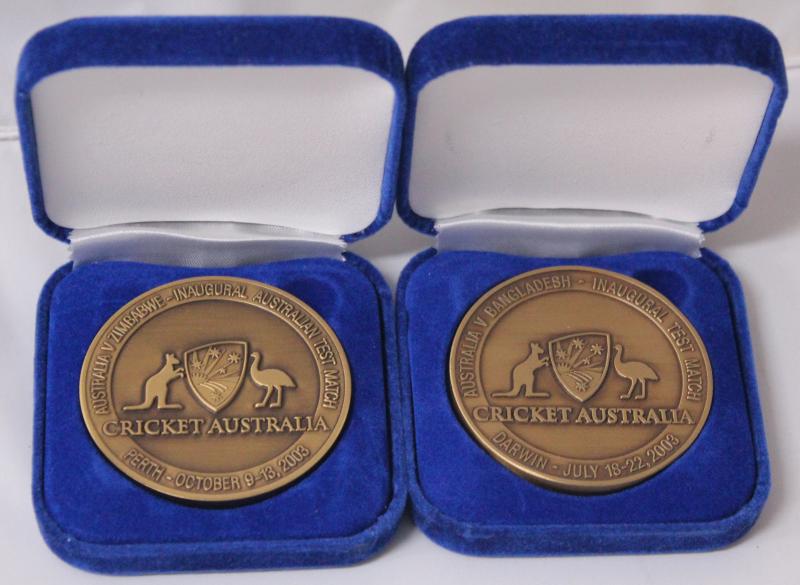 'J.N.GILLESPIE'; 'Wormsley 1997' bronze cricket medallion; 'Man of the Match/England v Australia Old Trafford 14th June 2001'; 'Australia v Bangladesh - Inaugural Test Match/Darwin July 18-22 2003'; 'Australia v Zimbabwe - Inaugural Test Match/Perth