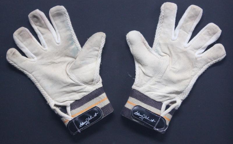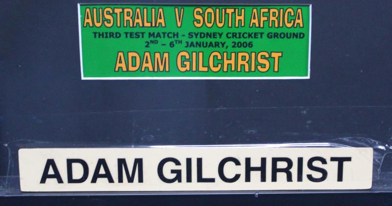 ADAM GILCHRIST: Display comprising pair of 'Adam Gilchrist' inner gloves from Australia v South Africa 3rd Test at SCG 2nd-6th
