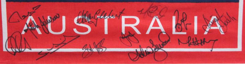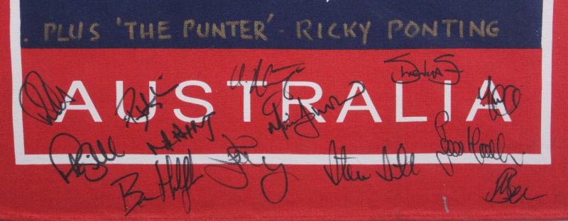 victory in the World Cup Final v India with Australia's 359 their highest ever in ODI history, with 16 signatures including Ricky Ponting, Damien Martyn, Adam Gilchrist & Glenn McGrath. Some creasing but unique souvenir. Ex Tim Nielsen (assistant