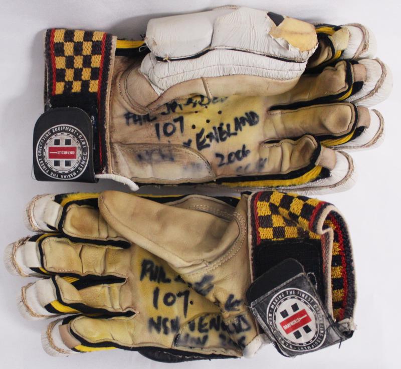 PHIL JAQUES: Pair of 'Gray-Nicolls' batting gloves, both signed & endorsed 'PHIL JAQUES, 107, NSW v ENGLAND, JAN 2006, SCG'; plus