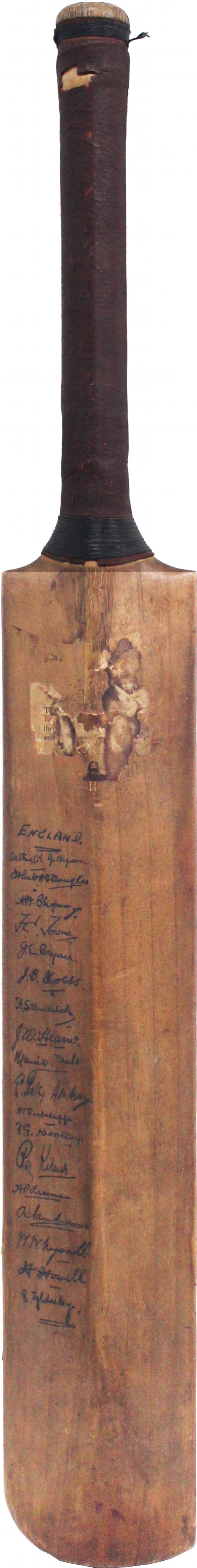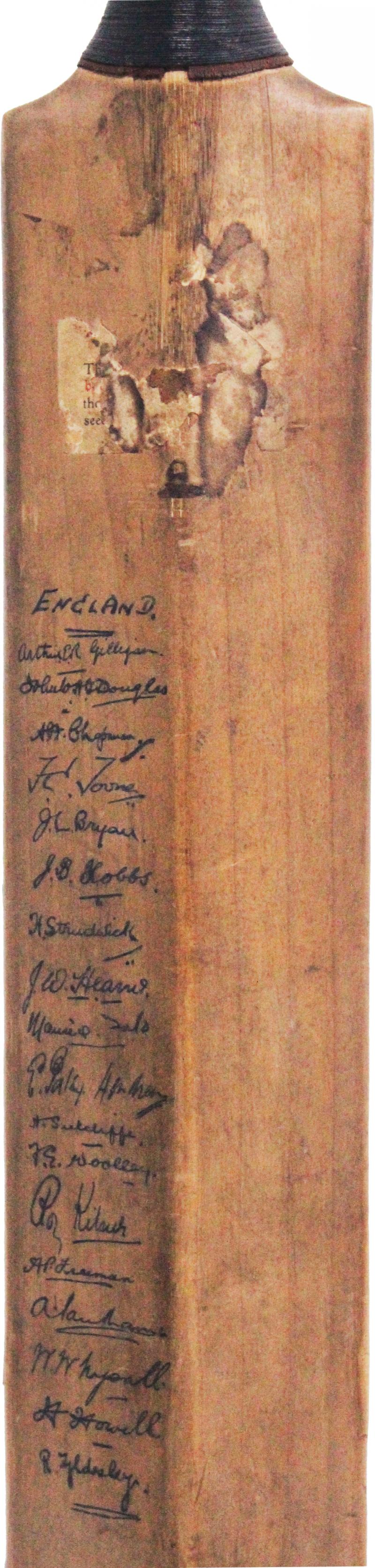 1924-25 England Team 'JH Prosser & Sons' cricket bat, match-used, signed on reverse by England team, with 18 signatures including