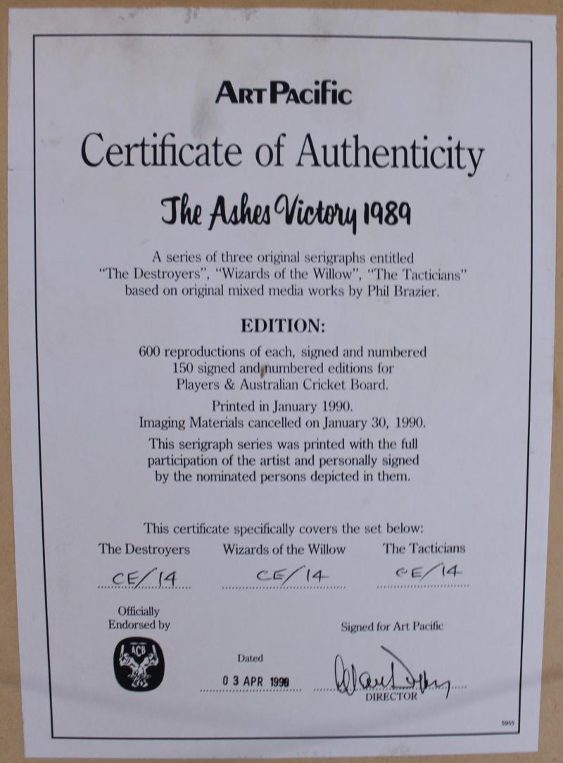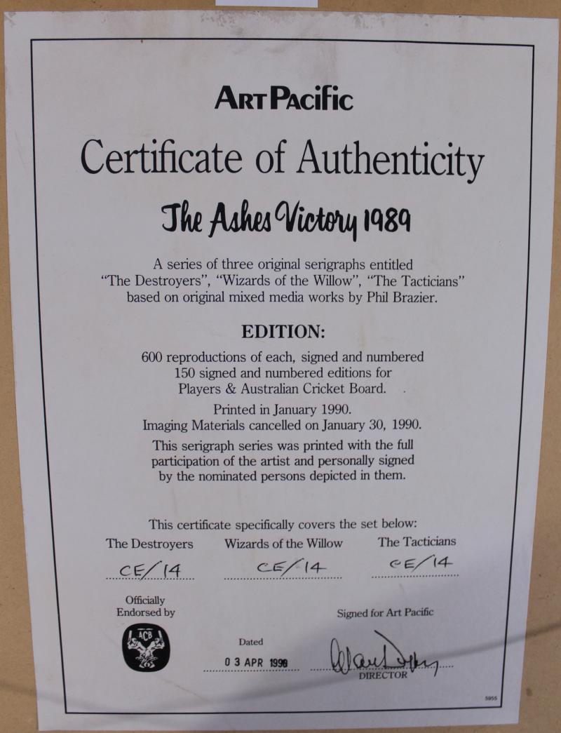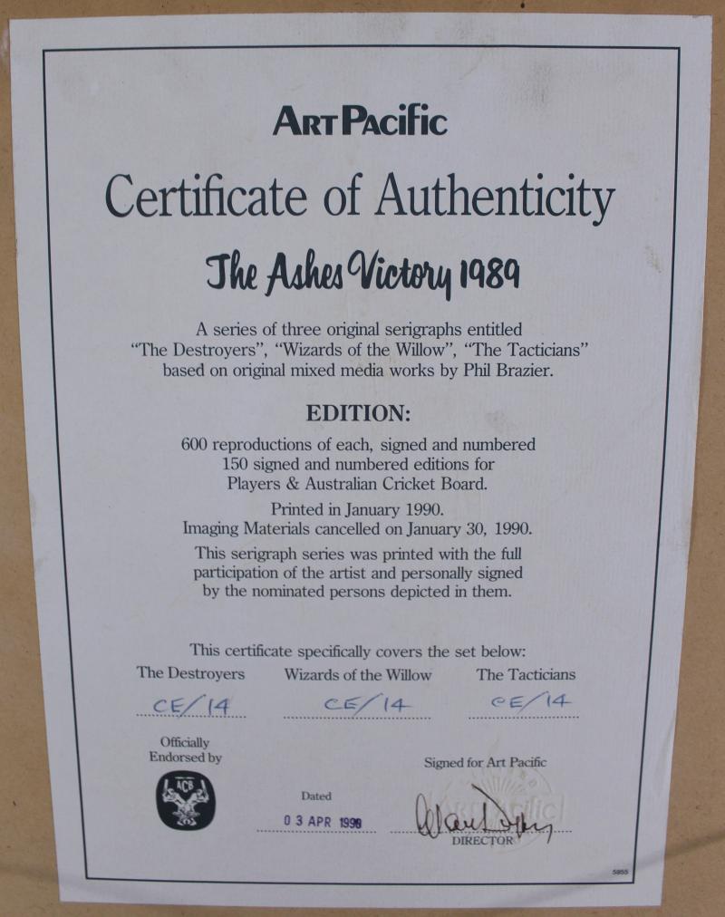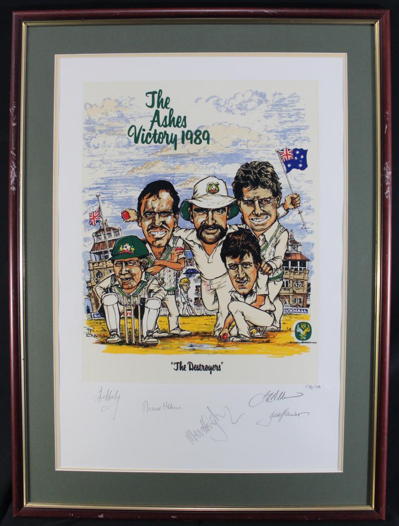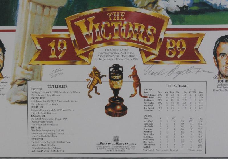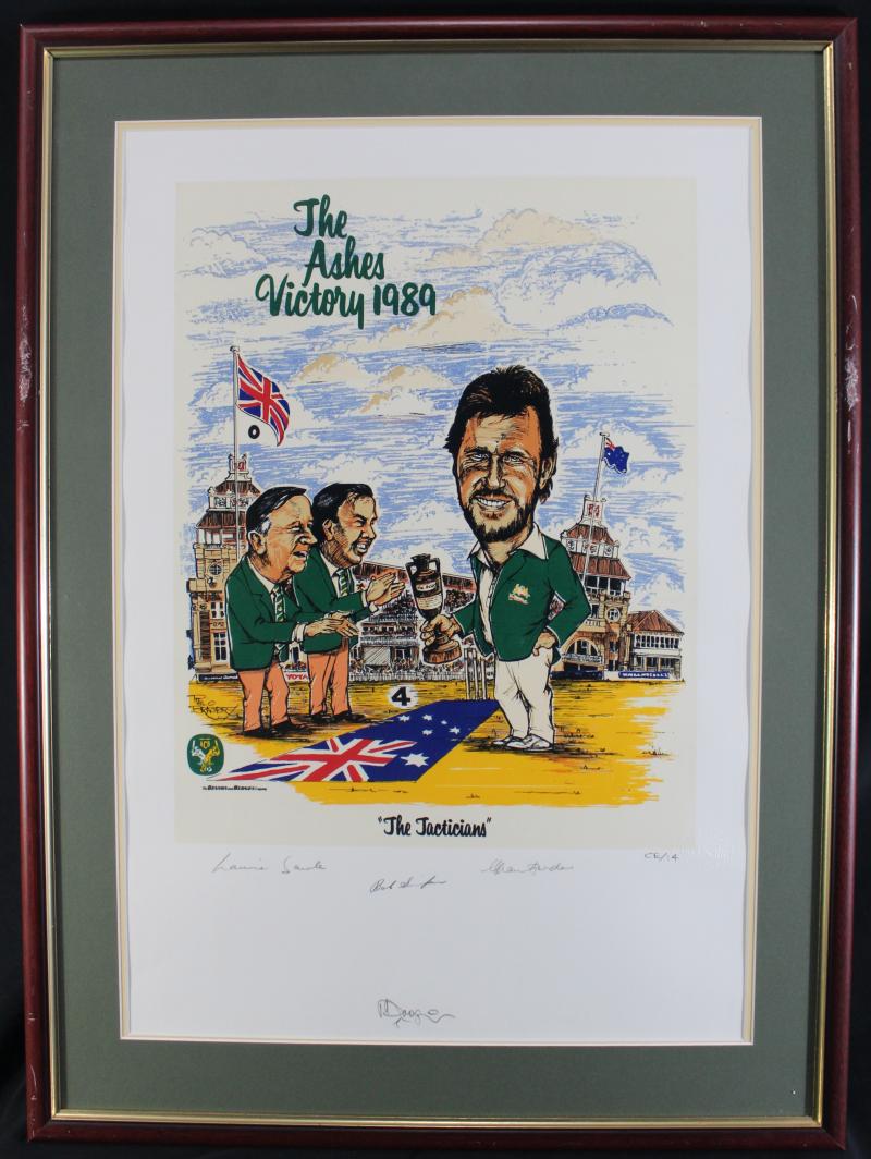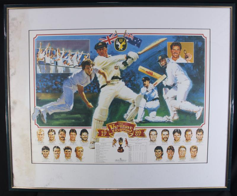 Prints comprising 'The Ashes Victory 1989' set of three prints with a total of 13 signatures including Allan Border, Mark Taylor,