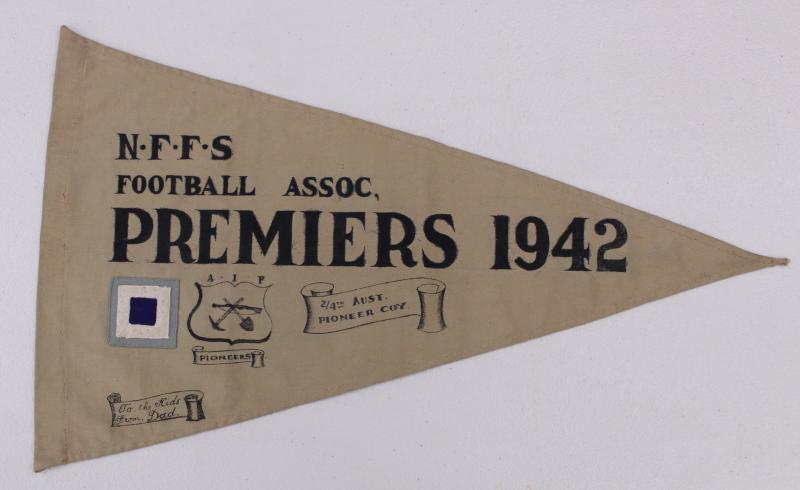 WW2 Premiership Flag 'NFFS Football Assoc PREMIERS, 2/4th Aust Pioneer Coy', (Northern Territory Field Force Services Football