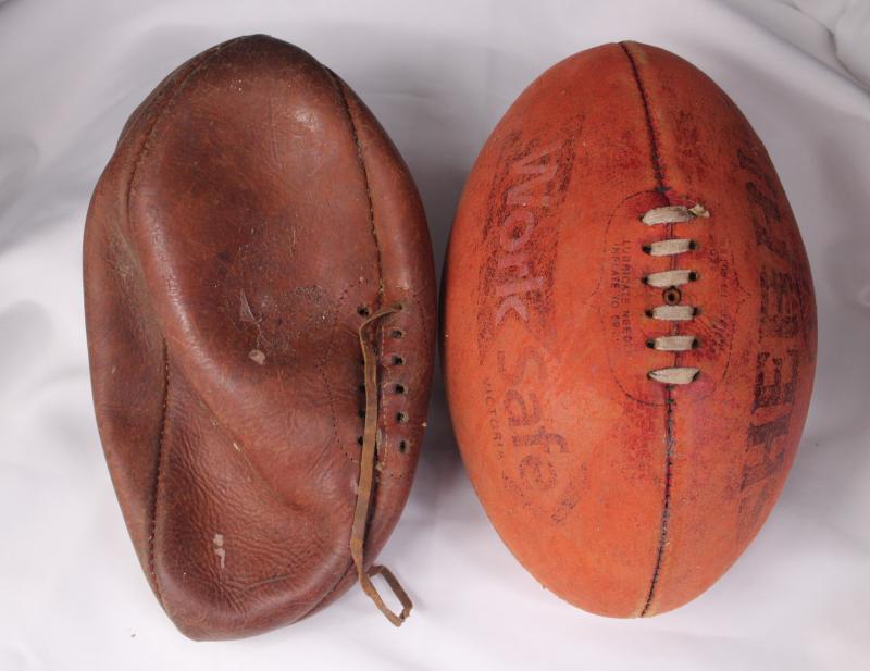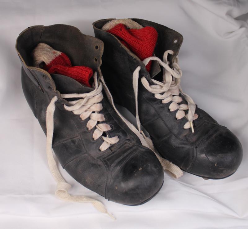 Balance of collection 1950s-80s footballs (8); plus 1960s football boots & Preston socks, Poor/Fair condition. (Image1) (Image2)
