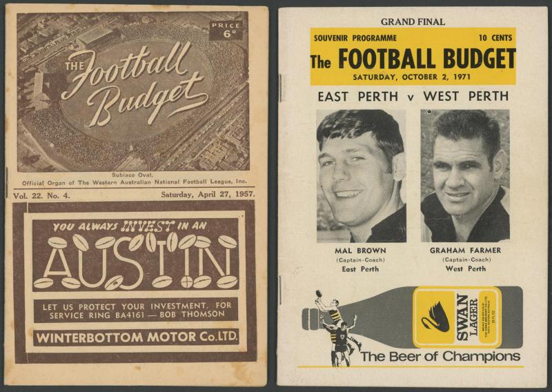 Pre-Season; WA Football Budget (8); SA Football Budget (12); VFA Football Recorder (10); cricket 1971 Centenary SA v Victoria, mainly Fair/Fine.