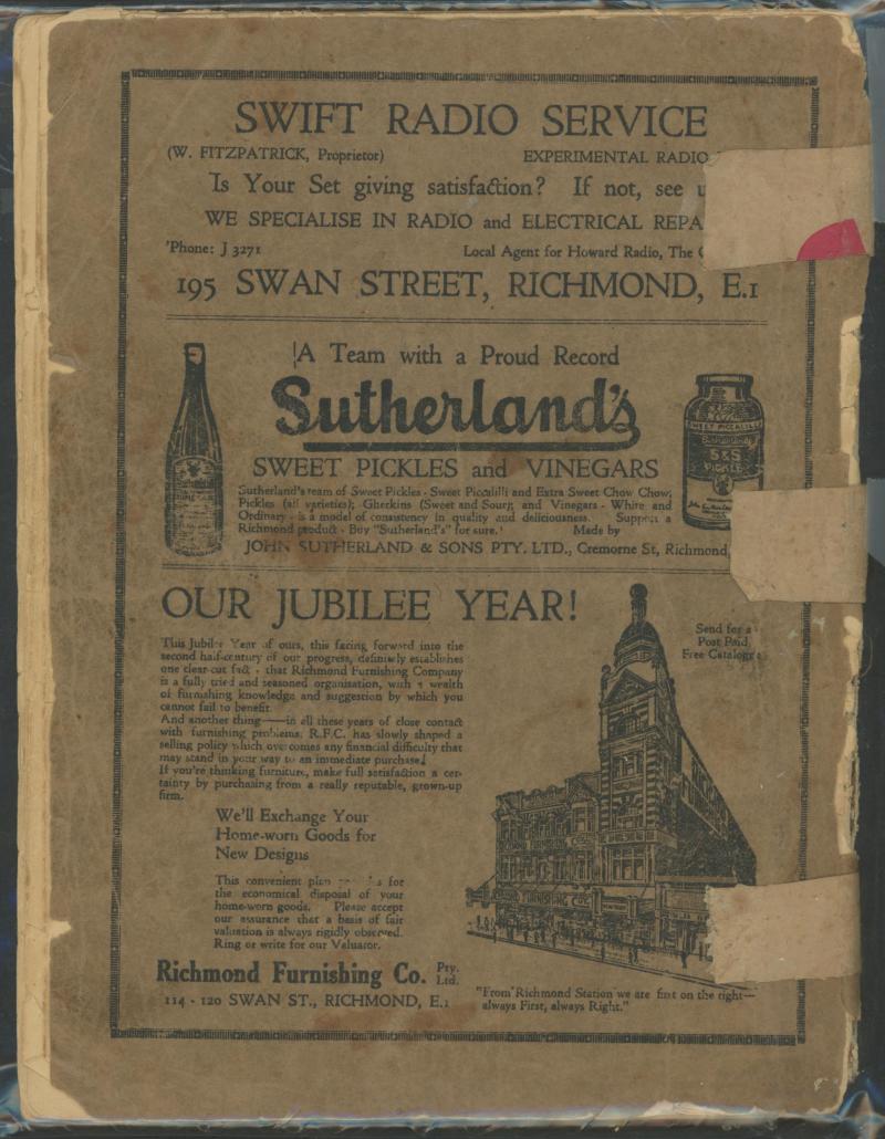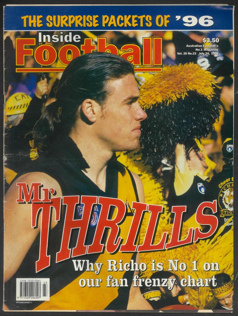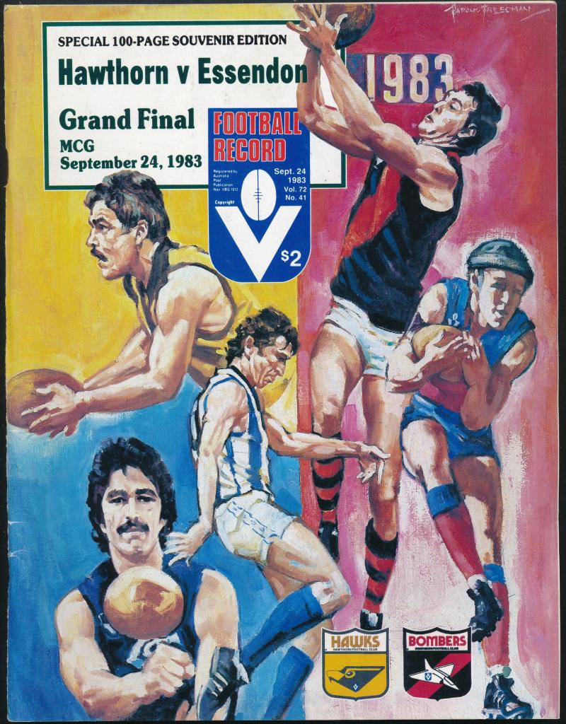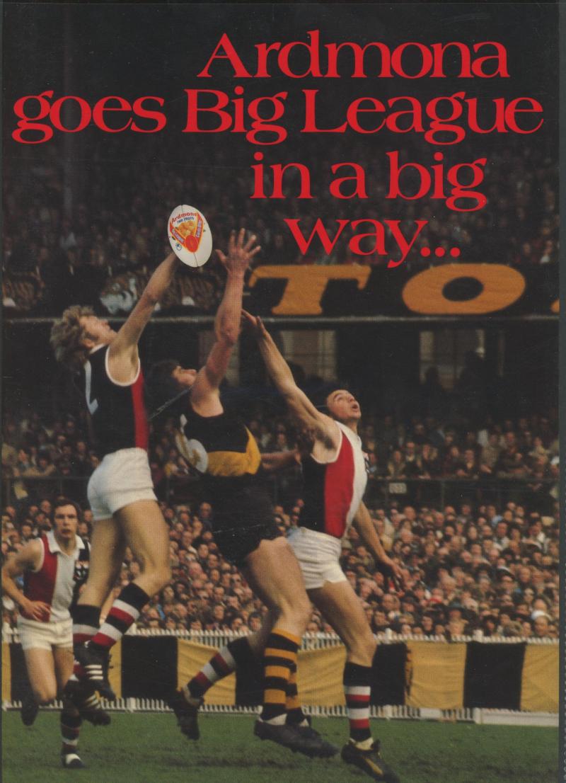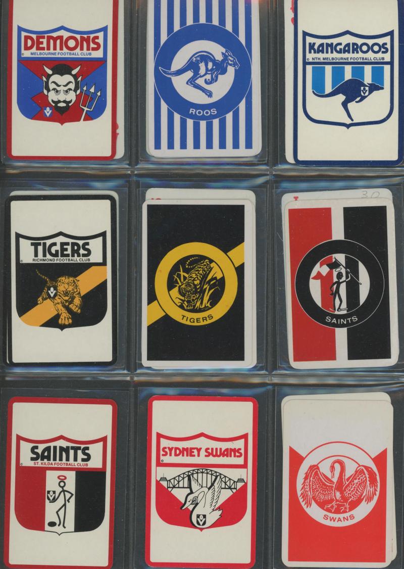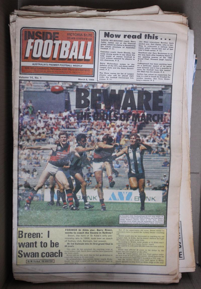 to VFL; 'Jubilee - Fifty Years of Richmond Football Club 1885-1934'; '1982 Grand Final Souvenir Song Book'; Fold-Out Poster Magazines (14); Practice match programmes (8); various club annual reports (38) & magazines (57); 1987 Scanlens box; place