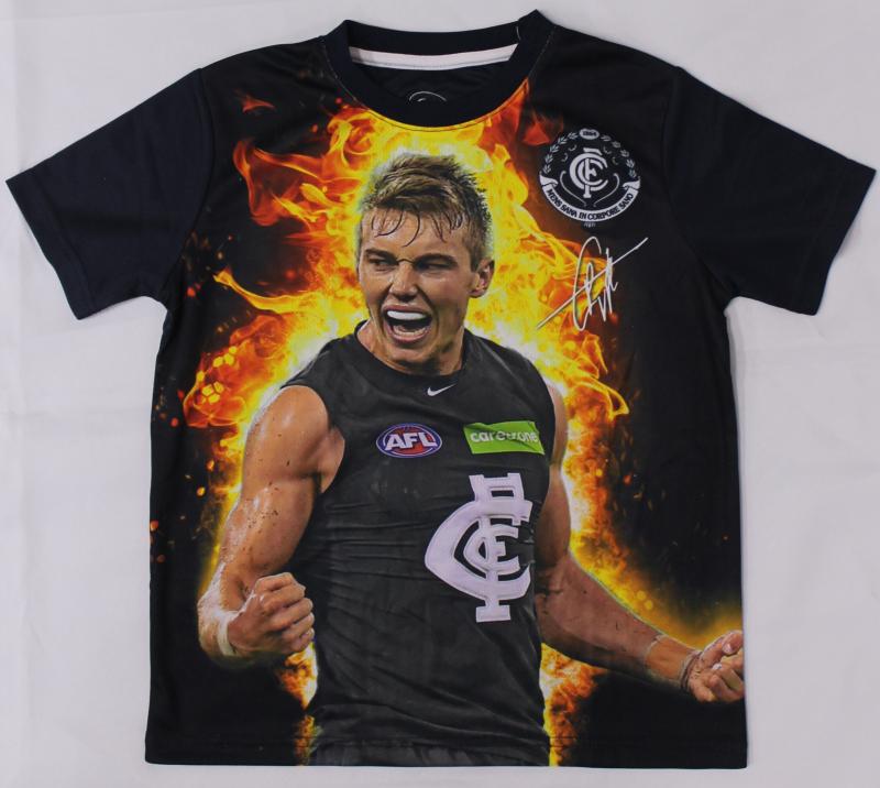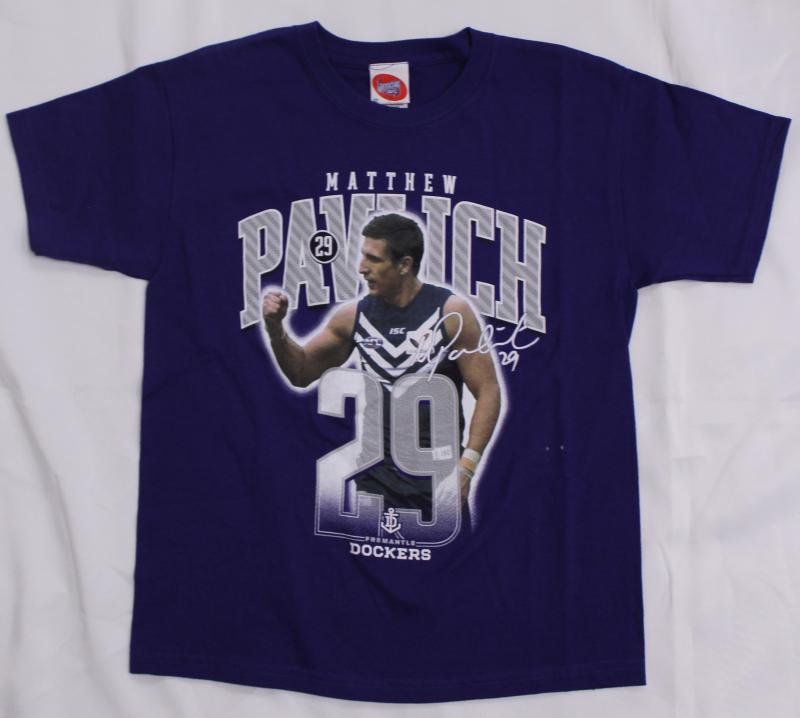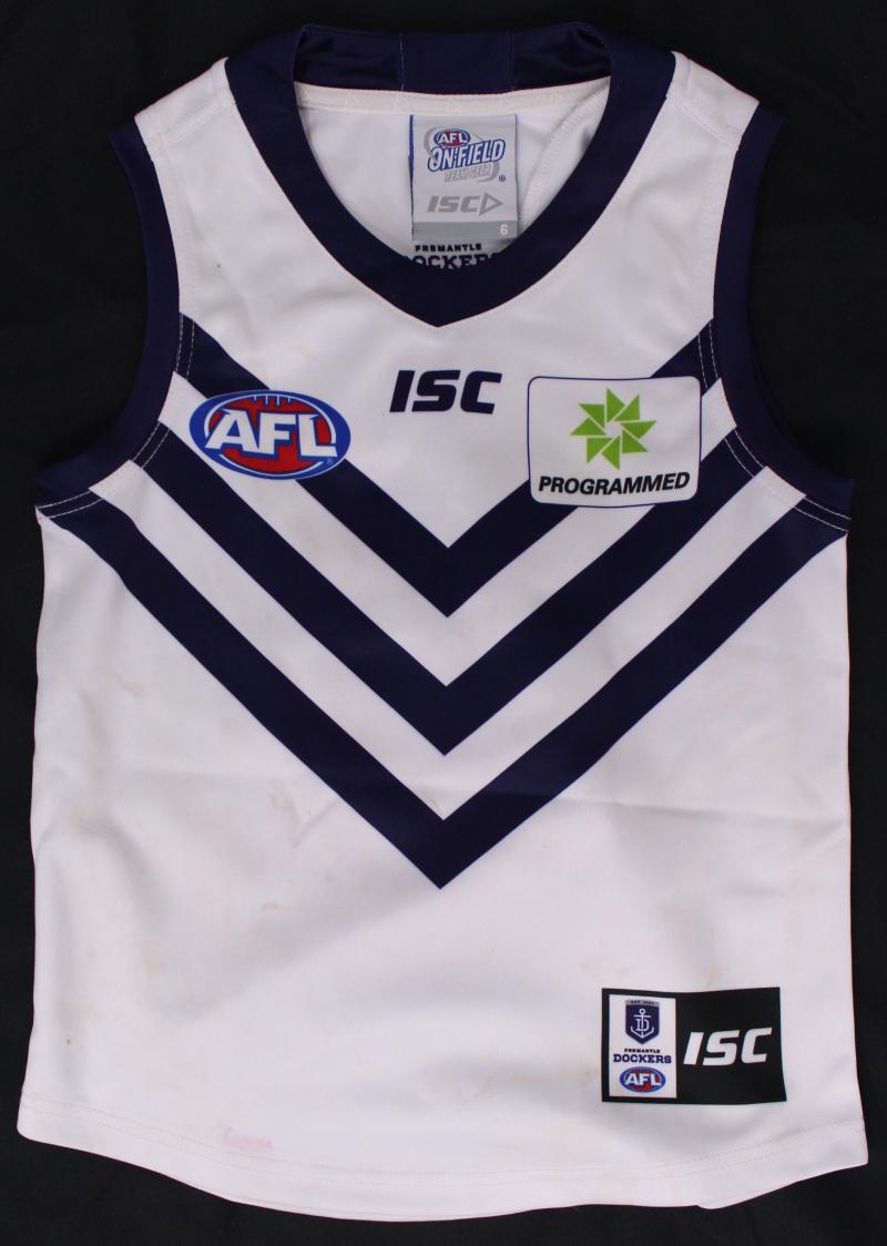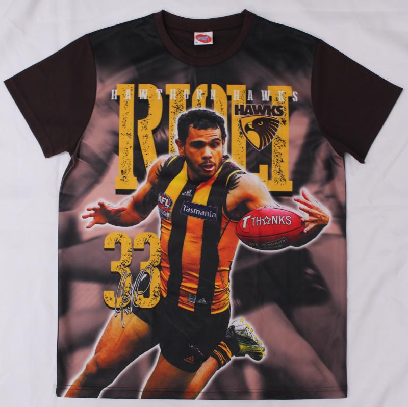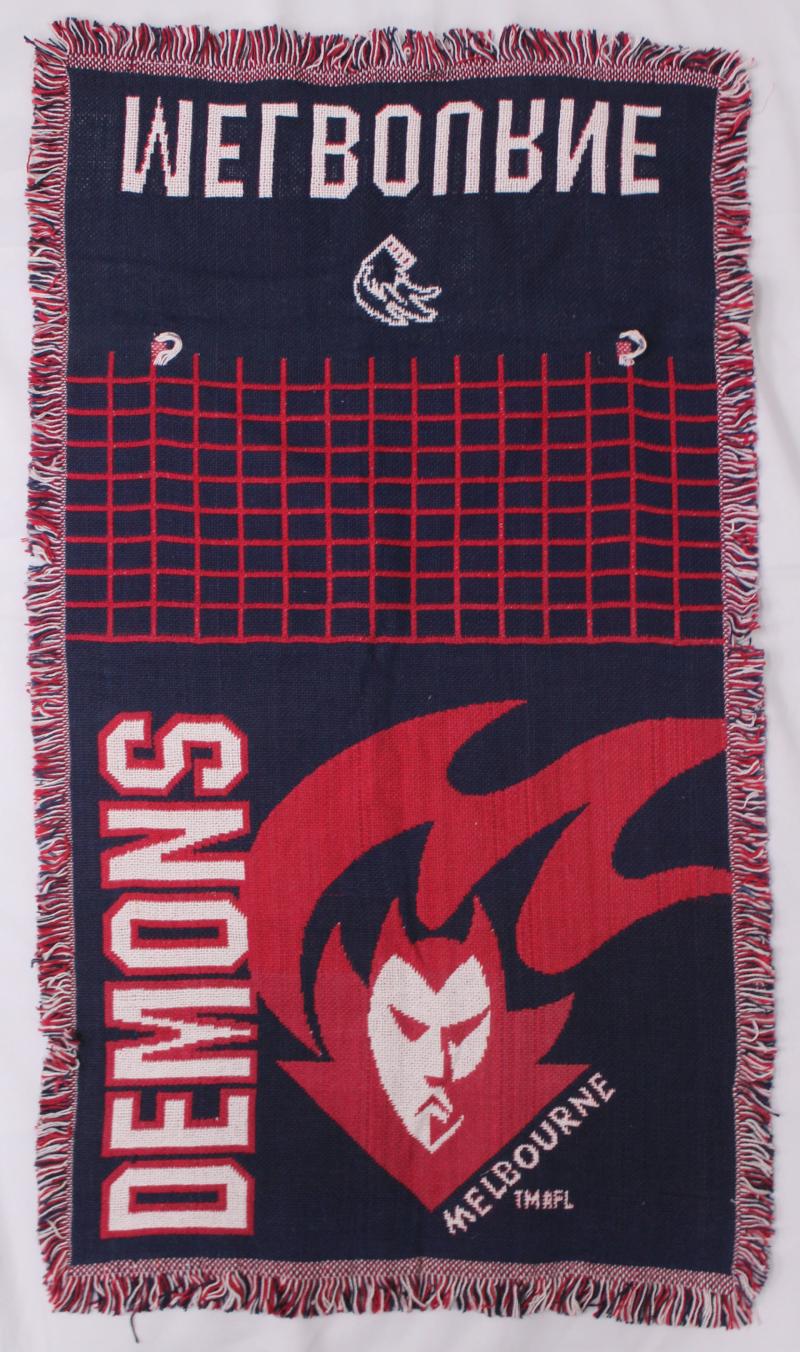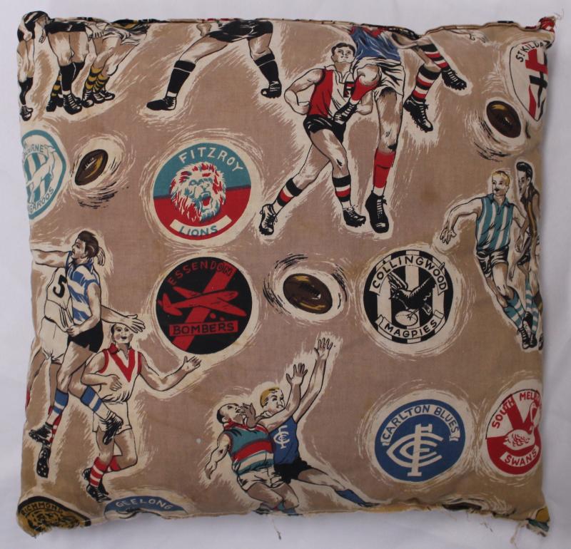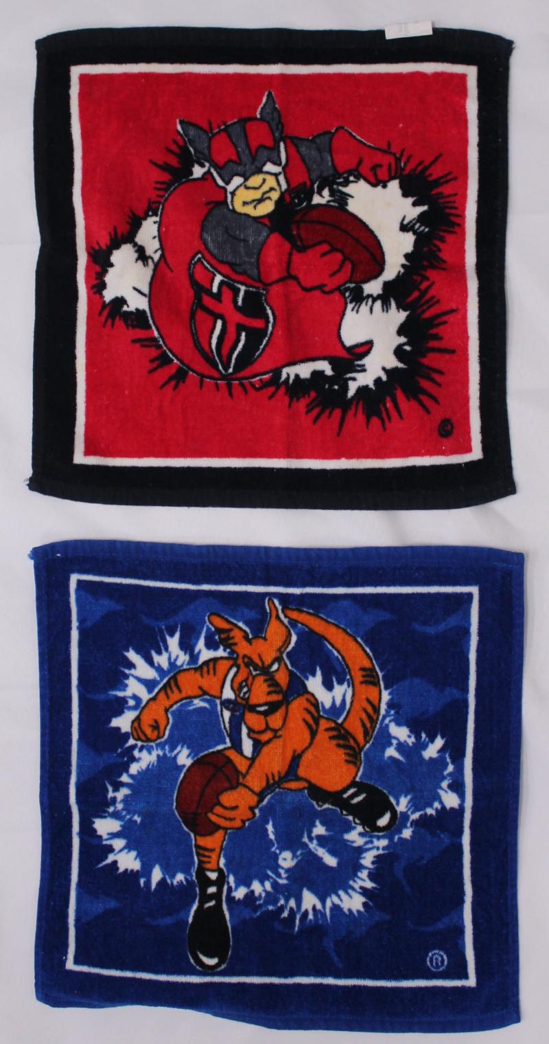 Nick Reiwoldt, Lance Franklin, Cyril Rioli, Patrick Dangerfield & Patrick Cripps; polos (4), T-shirts (10), jackets (6), scarves (10), beanies (2), tie, basketball singlets (2), 1960s cushion, doonas (4), sheet, towels (9), face cloths (2), flags