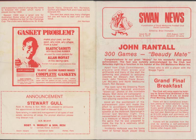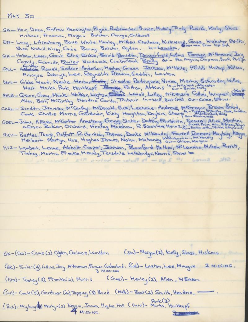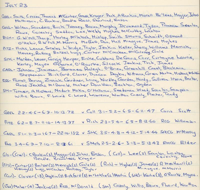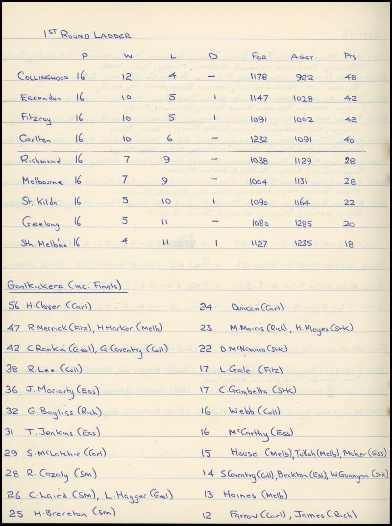 1928, 1933 & 1938, Fair condition. Compiled by Graeme Atkinson whilst researching for his first book 'The Courage Book of VFL Finals' first published in 1973.