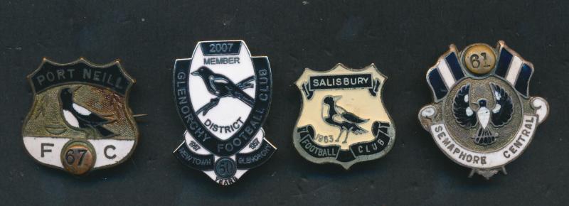 Badges 1937-2007 collection of "Magpie" football badges, comprising Booborowie; Castlemaine 1965; Central Broken Hill (4) - 1962,