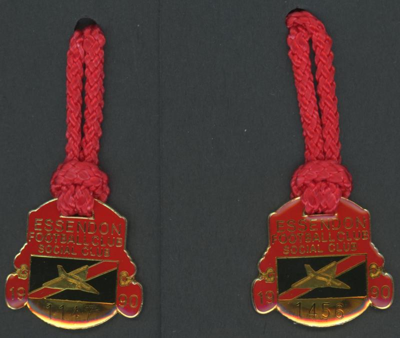 Australian Football Club'; cute cat badge wearing Collingwood-style jumper; 1990 Essendon membership badges (2), Fine/Very Fine.