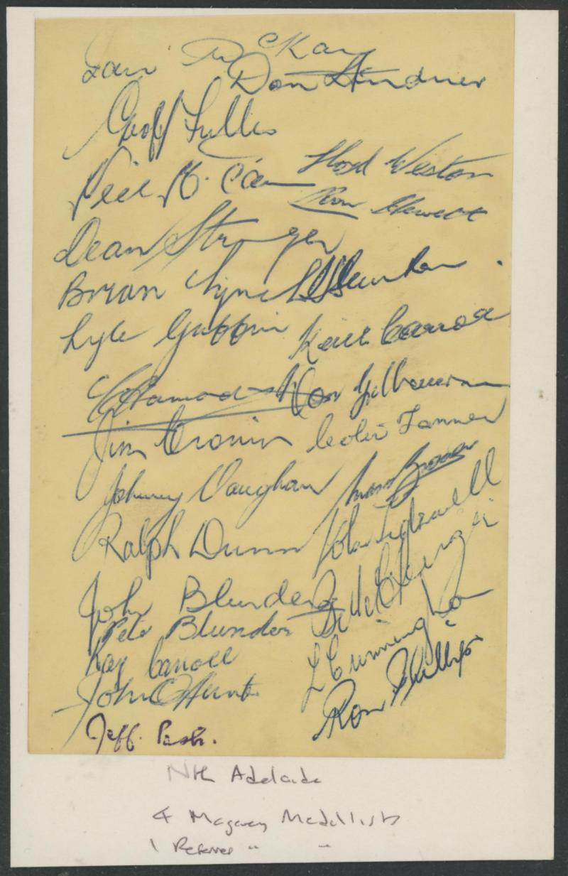 League; plus North Adelaide (SANFL) circa 1953 autograph page with 27 signatures including Jeff Pash, Ron Phillips & Ian McKay.