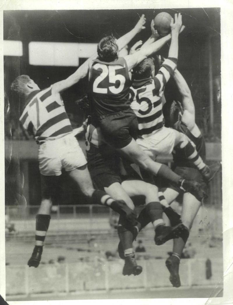 next 13 months on garrison duties in Darwin. Noted players were Jack Lynch (Geelong & Preston), Fred Fairweather (North Melbourne) & Tom Roulent (North Melbourne), mainly Fine. (Image1)