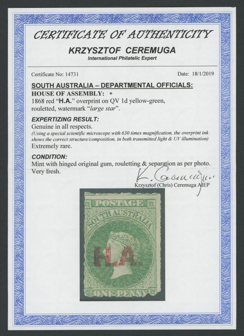 Overprinted 'H.A.'