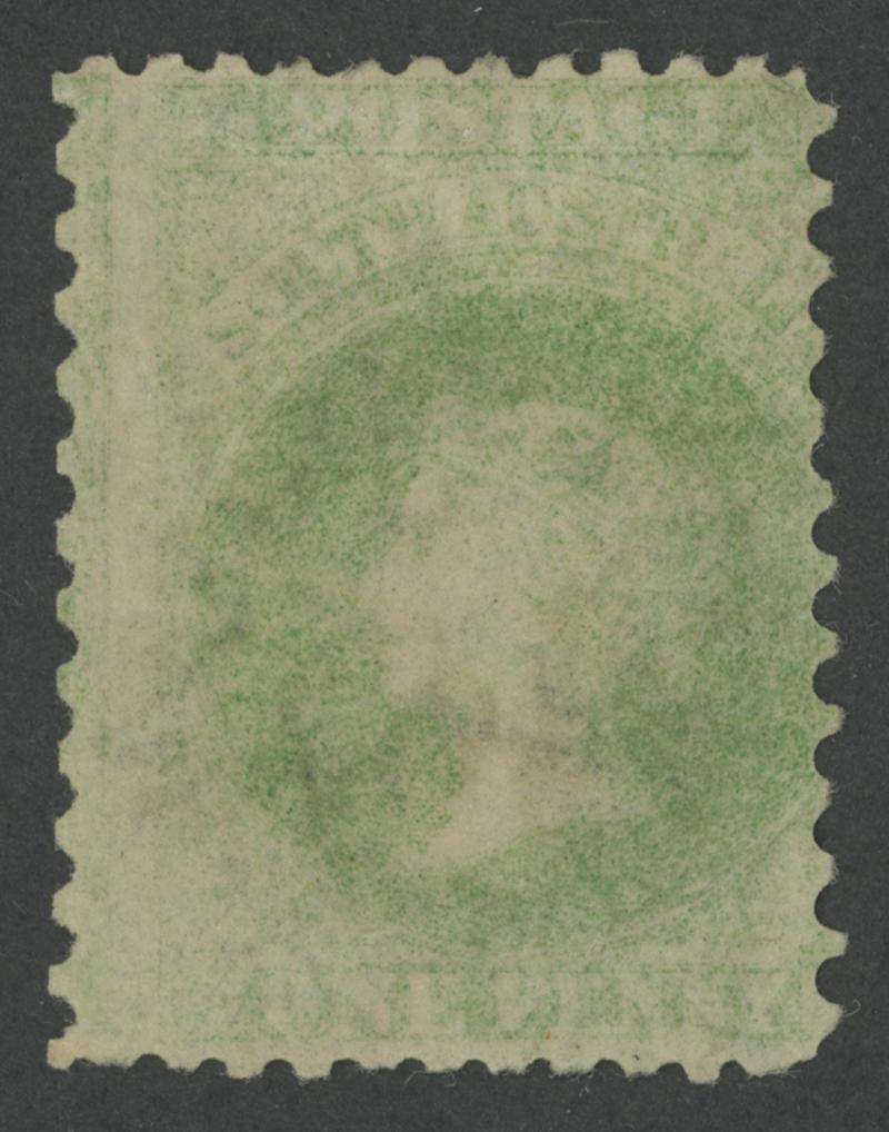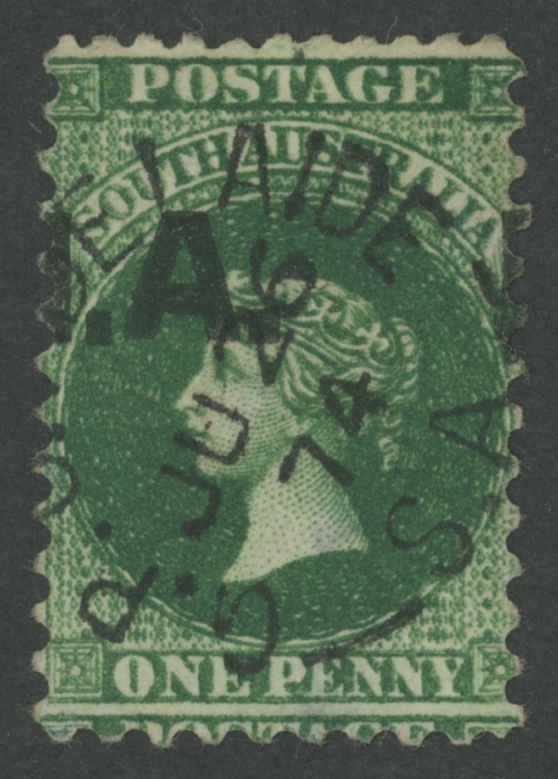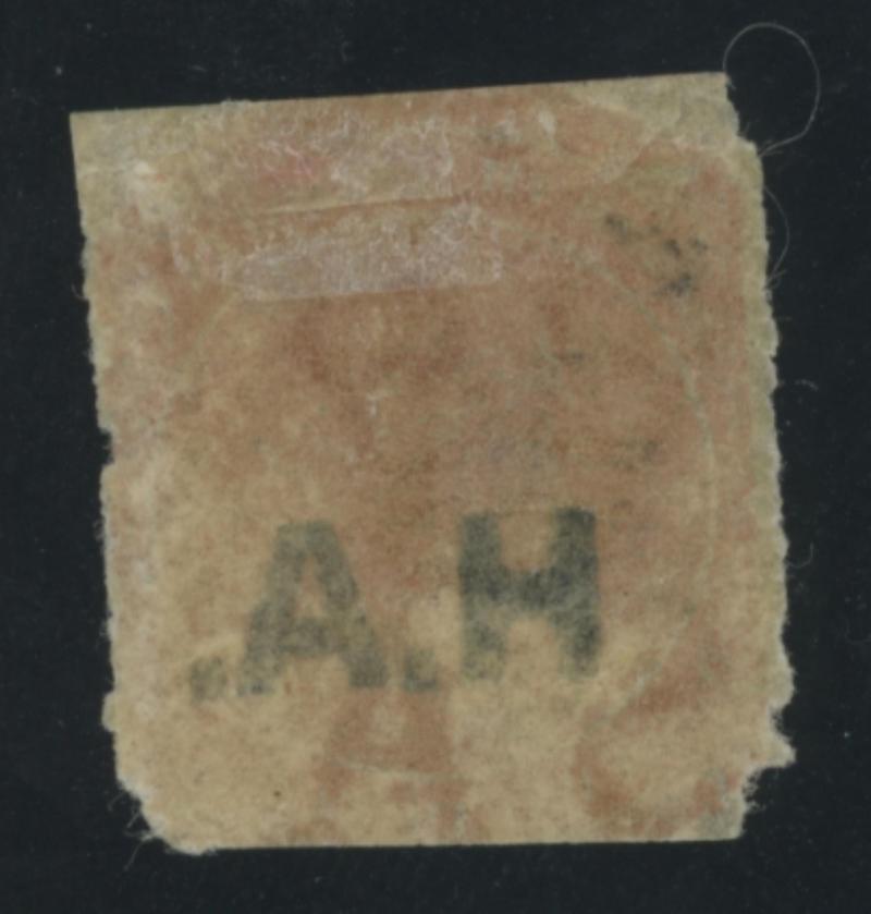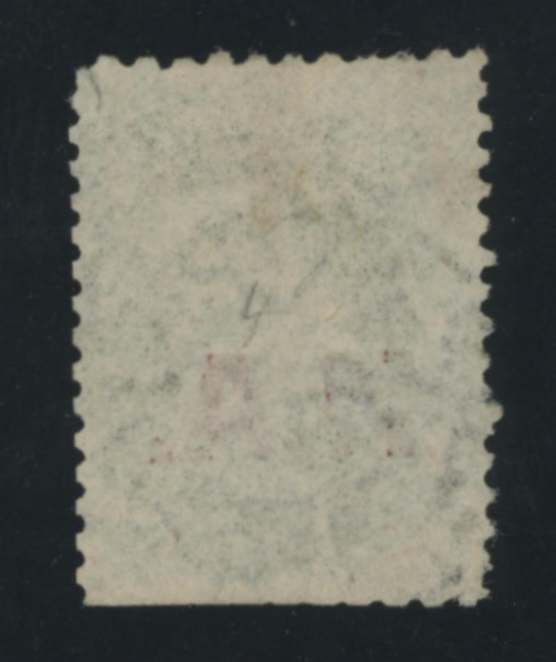 the Overprint Misplaced to Left, a couple of minor defects, GPO cds with indistinct date, Cat £500. Rated RRR. Ex Don Pearce: sold for $287 (Sale 247 Lot 389). [Date range 26.6.1874 to 6.11.1874] (Image1) (Image2)