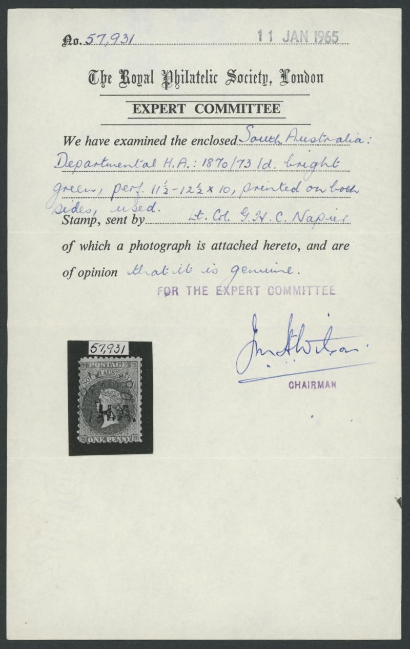 the Overprint Misplaced to Left resulting in 'I.A.' at Left and 'I' at Right, shallow thin, superb GPO cds of 'JU26/74', Cat £500+. Rated RRR+. Ex Les Munn: sold for $407 (Sale 110 Lot 845). Absent from the 'Besancon' and Don Pearce collections.