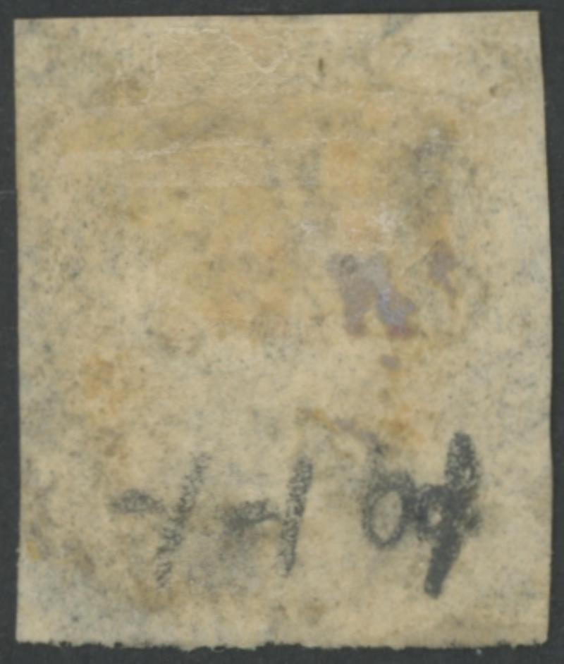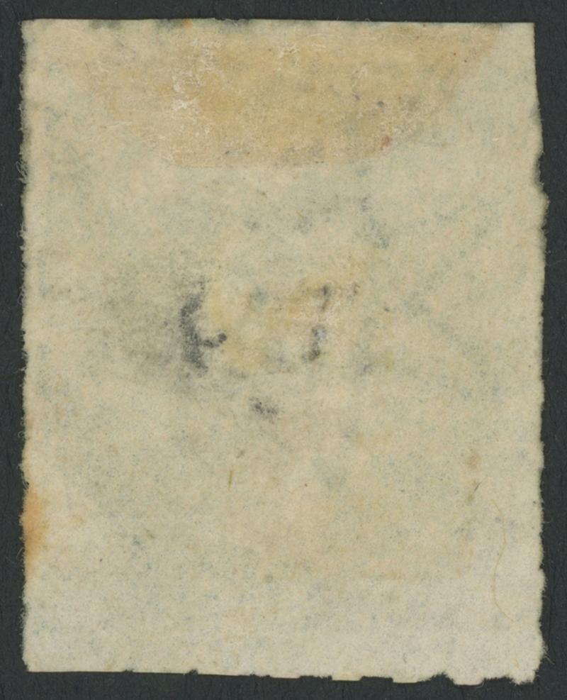 rouletting at right otherwise imperforate and cut from the sheet on all sides to preserve the design, Port Adelaide cds of 'NO27/68', Cat £450. Rated RRRR. Ex Victor Bullock: sold for $303. Chris Ceremuga Certificate (2019) states "extremely rare...