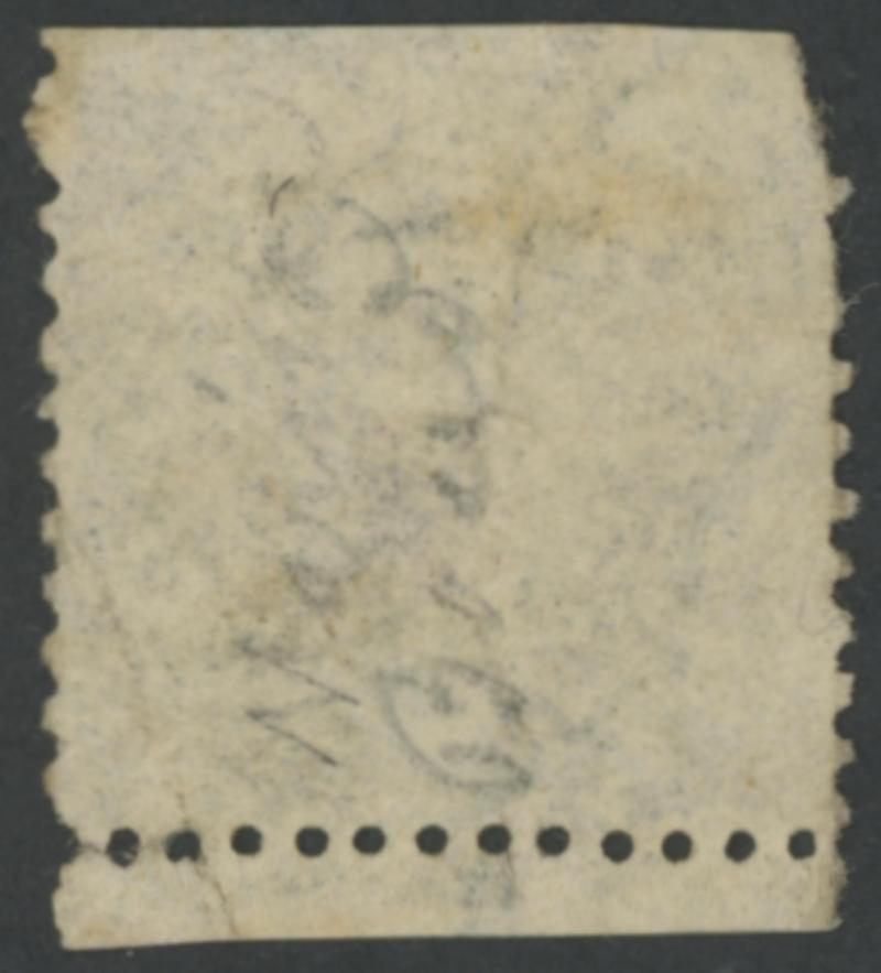 "very rare". Don Pearce's two completely imperforate examples - almost certainly from the same sheet as this stamp - sold for $1315 & $895 respectively (Sale 247 Lots 493 & 494). Absent from 'Besancon'. [Date range 31.7.1868 to 27.11.1868] (Image1) (Image2)
