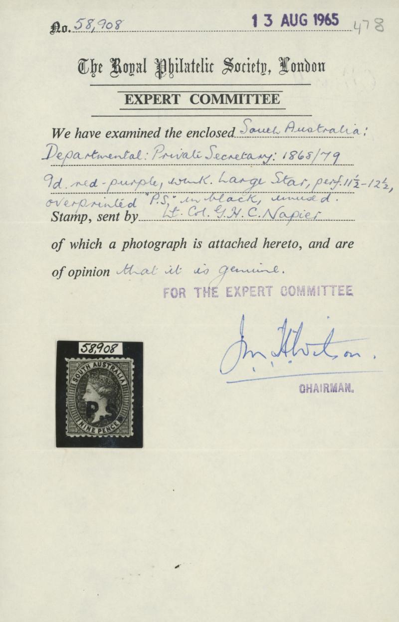 gum, undercatalogued at £275. Rated RRR; unrecorded unused. Ex Rev James Mursell and Colonel Napier (II). RPSL Certificate (1965). The almost identical Vestey example sold for £900. Absent from Don Pearce's collection.