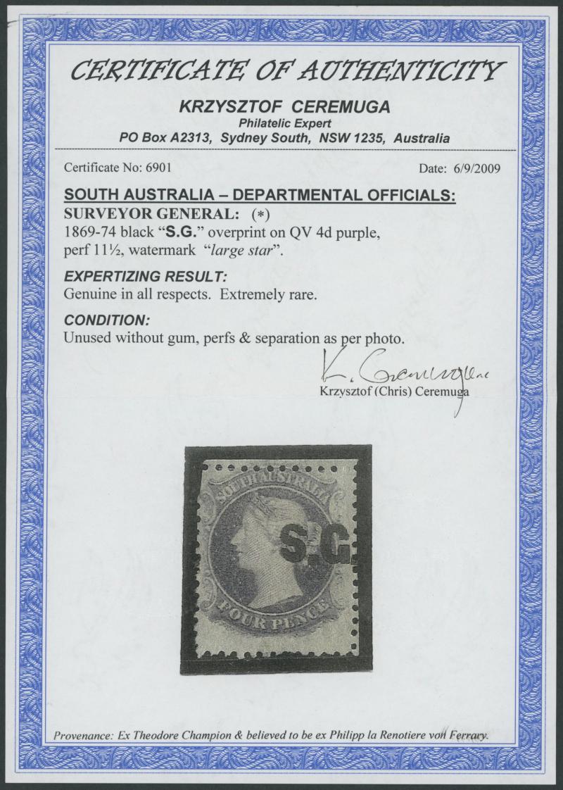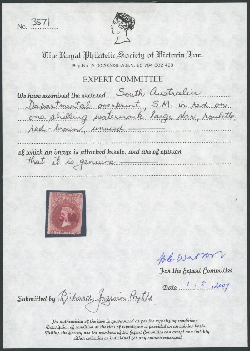 used by Ron Butler but we know of several examples so it should probably be rated RRR. Ex 'Sir Humphrey' (Brian Farmer): sold for $465 (Sale 118 Lot 533). Chris Ceremuga Certificate (2011) states "extremely rare". The very fine 'Besancon' example was