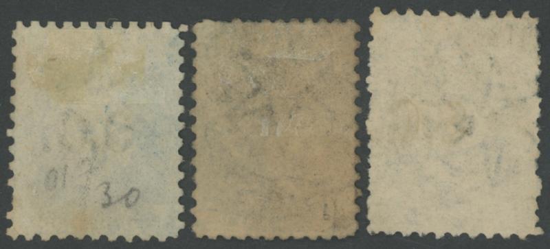 DO513; and 3) Irregular Compound Perf 11½-12½x11½-12½x10x11½-12½ DO515; light GPO cancels, Cat £210. Rated S S or R respectively; all unrecorded unused. Don Pearce's similar trio - graded 'A/A-' - sold for $323 (Sale 247 Lot 790). [Date ranges 1)