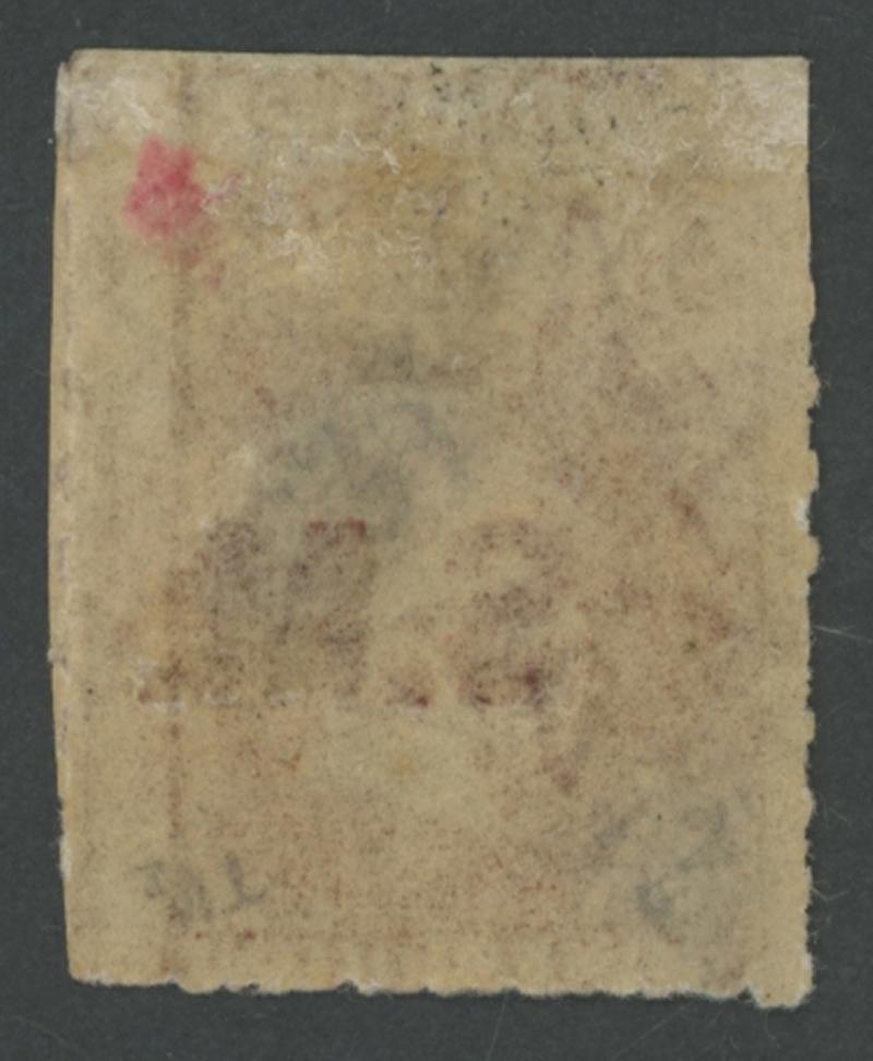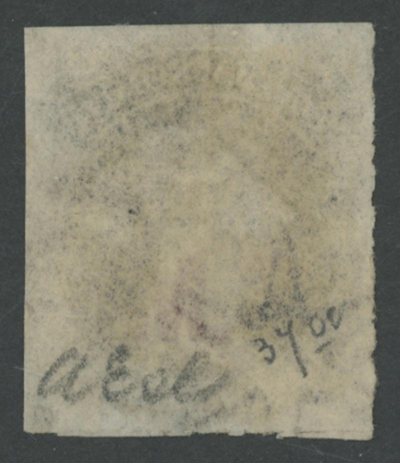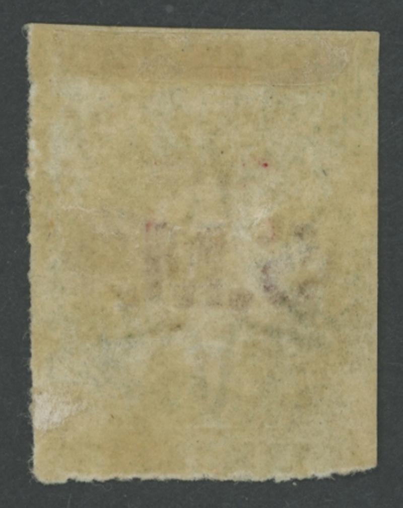 vertical marginal watermark line, rouletting except at the top where cut from the sheet clear of the design, large-part gum, Cat £750. Rated RRR. RPSV Certificate (2007). The 'Besancon' and Don Pearce examples sold for SFr965 & $895 (Sale 247 Lot