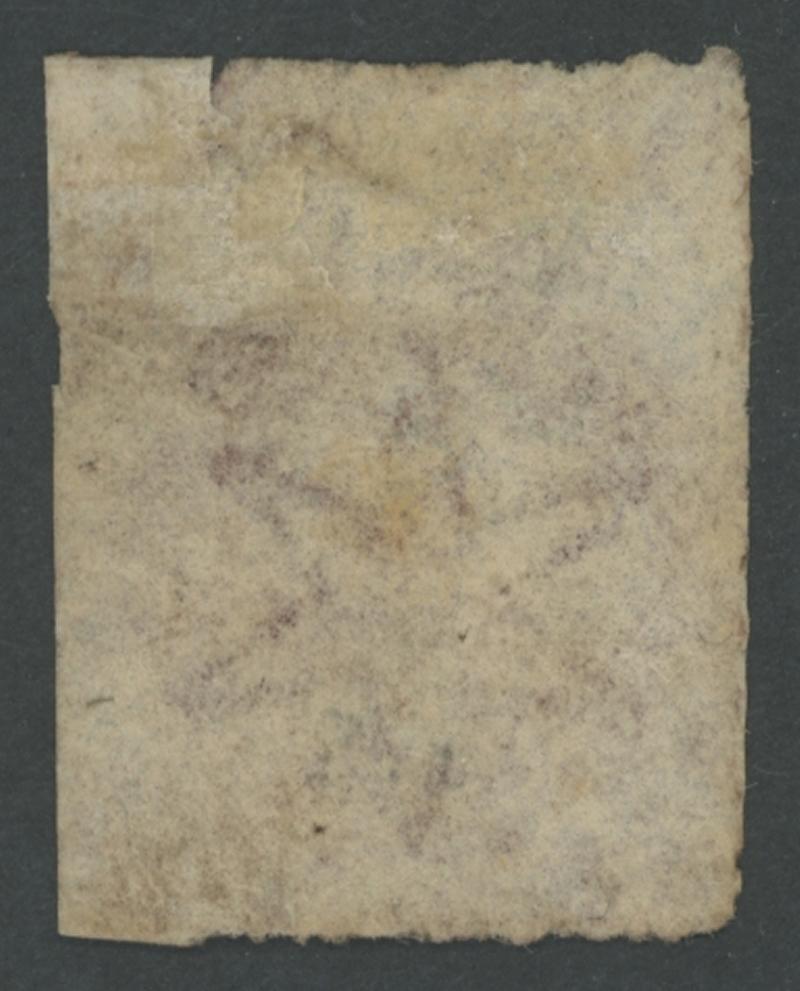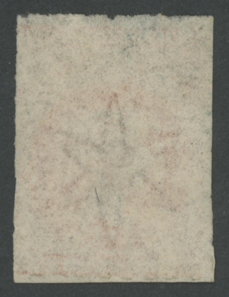 rouletting except at right where cut from the sheet clear of the design, significant fault at upper-right repaired with a piece from another stamp, light part-strike of the scarce 24mm 'REDRUTH/=S.A=' cds (rated RRR), undercatalogued at £250. Unrated
