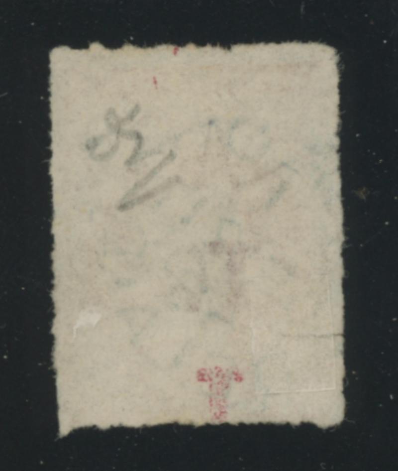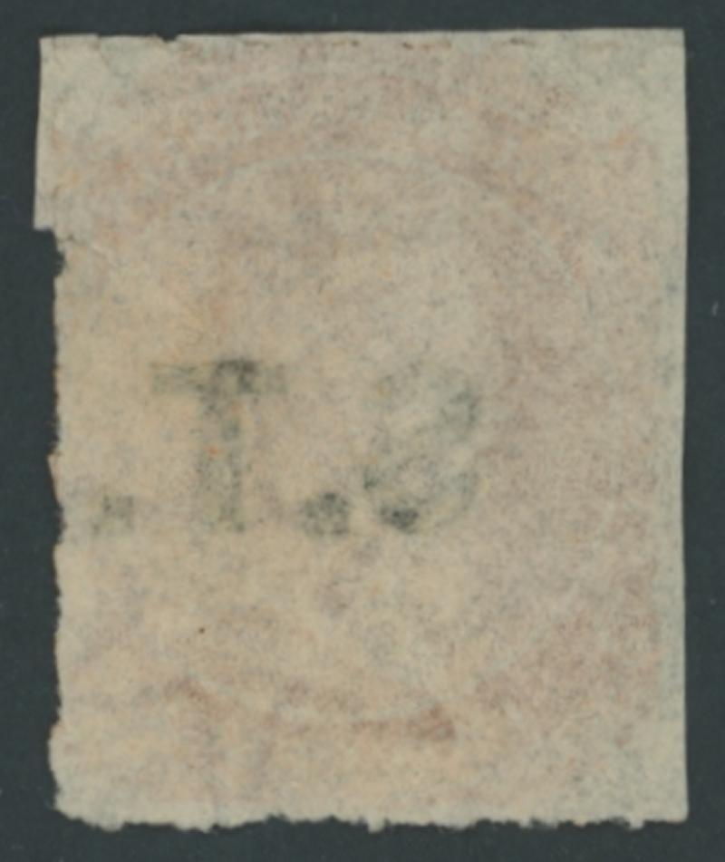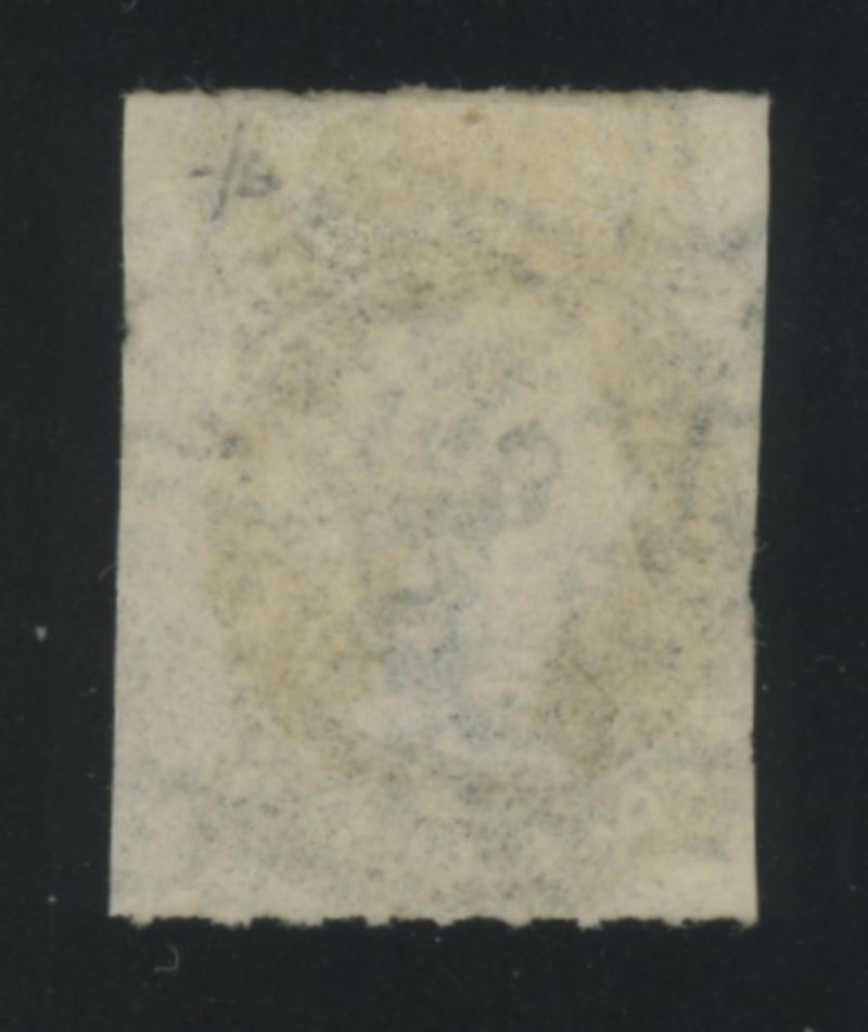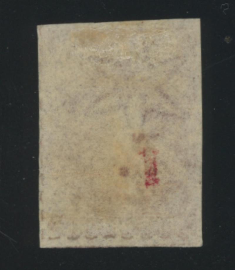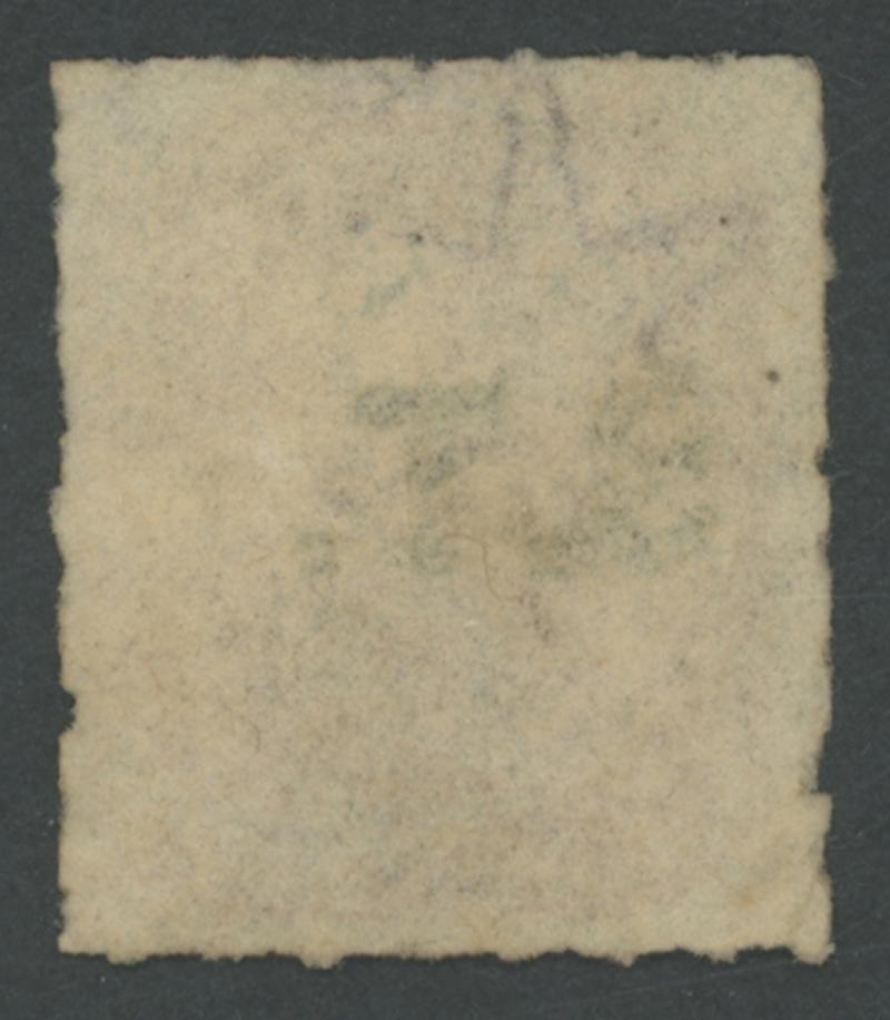 sheet clear of the design at the base and into the design at left, indistinct GPO cds, Cat £325. Rated RRRR. Ex 'Besancon': sold for SFr218. Chris Ceremuga Certificate (2018) states "extremely rare". Don Pearce's example - graded 'A-' - sold for $525