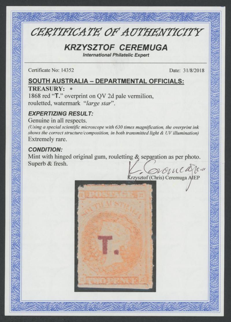 sheet clear of the design, shallow thin at the top, part-'PORT MACDONNELL' cds, Cat £275. Rated RRR. The superb 'Tamiami' example sold for $455 (Sale 236 Lot 693). Superior to Don Pearce's example - graded 'B' - that sold for $323 (Sale 247 Lot
