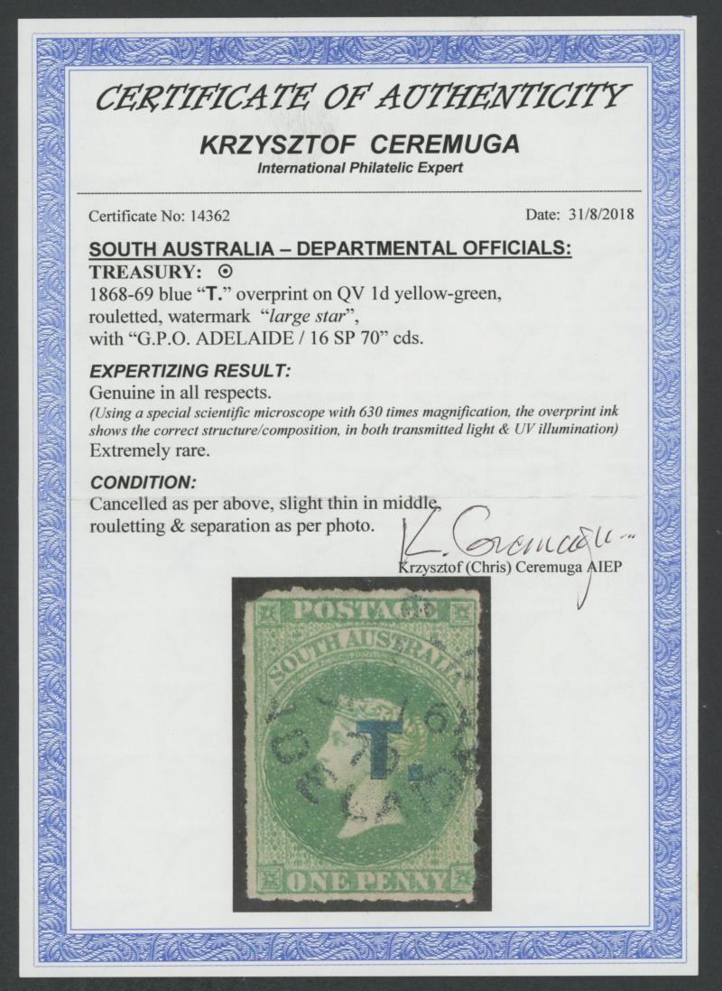 separation fault at upper-left, minor thin, GPO cds of 'SP16/70', Cat £250. Rated RRRR. Ex 'Besancon': sold for SFr145. Chris Ceremuga Certificate (2018) states "extremely rare". The very similar Don Pearce example of the same date sold for $525