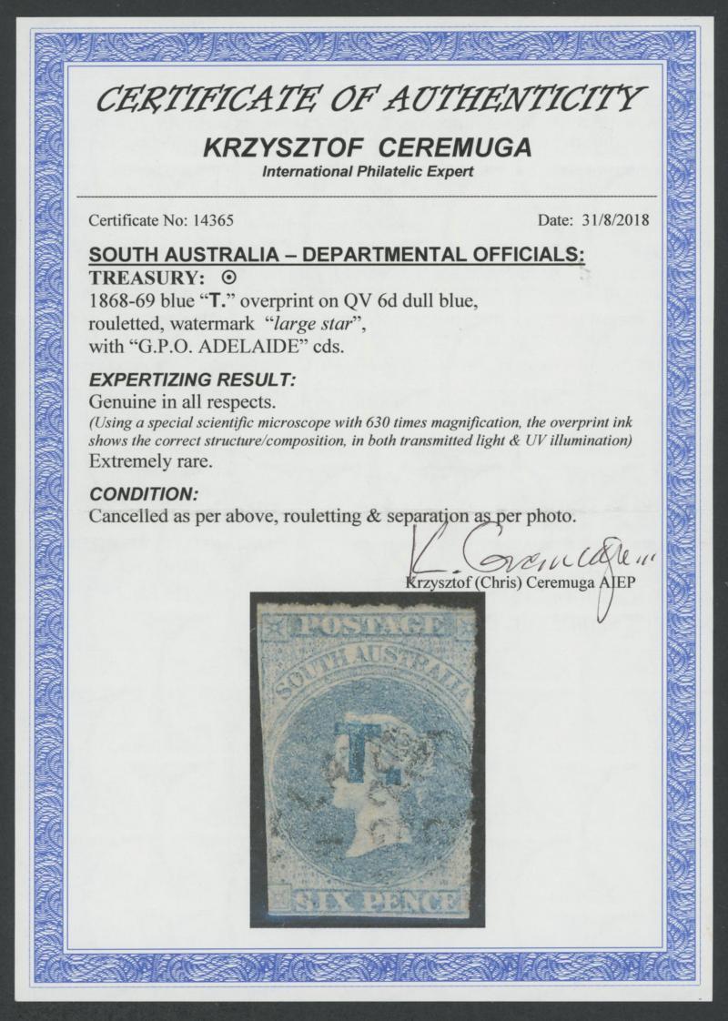 at lower-left otherwise superb, 'ROBE/JA6/70/SA' cds, unpriced unused by Gibbons. Rated RRRRR. Ex 'Queen Adelaide' (Hugh Morgan): sold for $810 (Sale 111 Lot 693). Chris Ceremuga Certificate (2010) states "extremely rare...superb example". Don