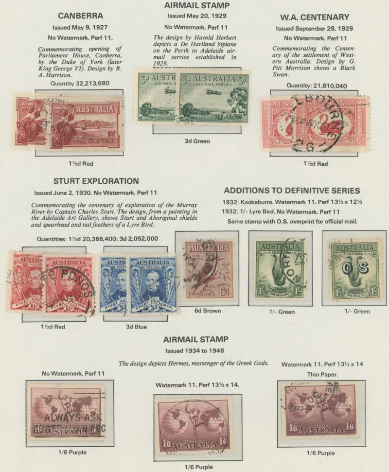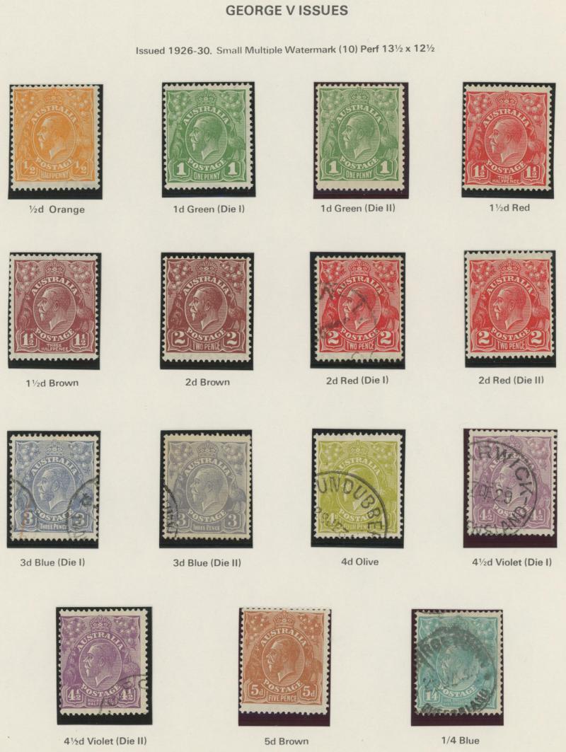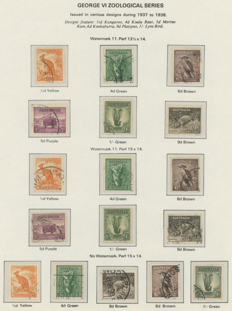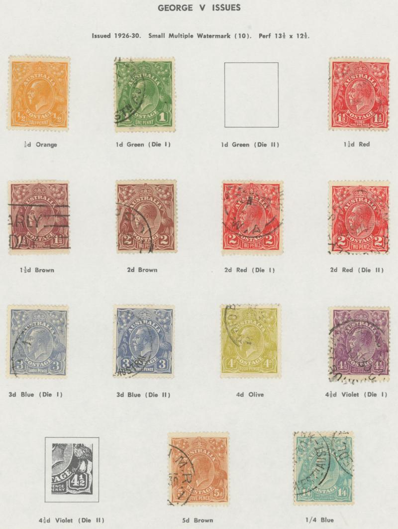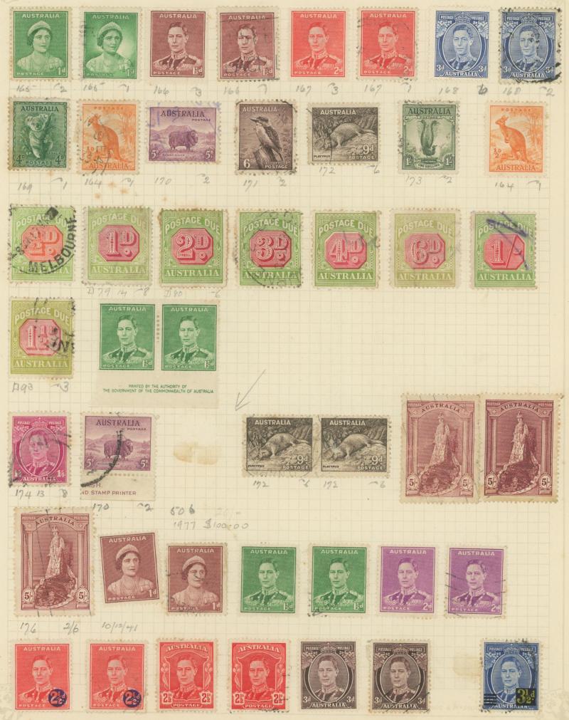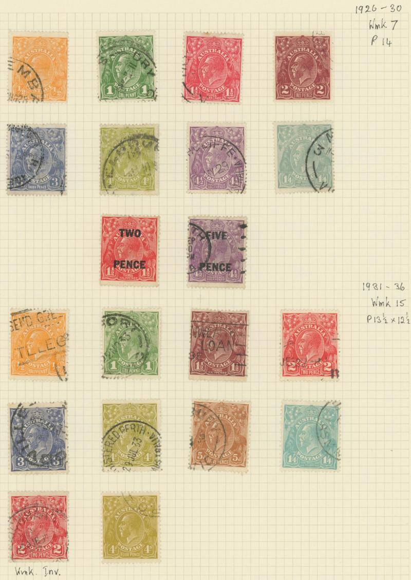 used noted Engraved 6d Kookaburra * & used, KGV Commemoratives range to 2/- (no 5/- Bridge), a few Postage Dues, the later issues to 1970s incomplete, potential for further varieties to be found, definite postmark interest especially amongst the