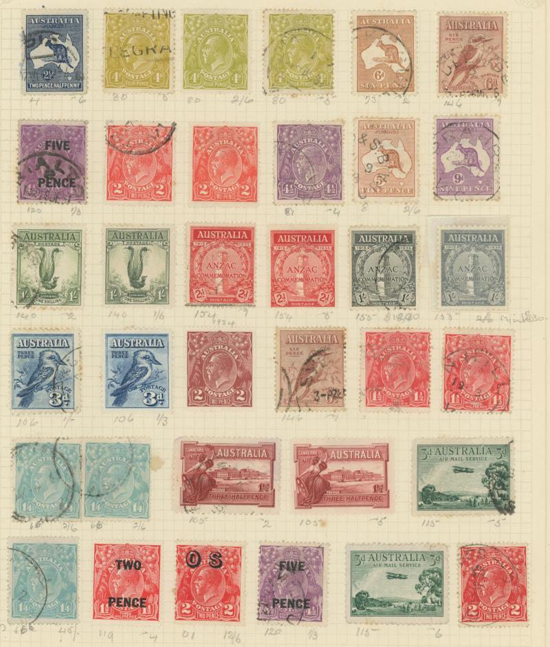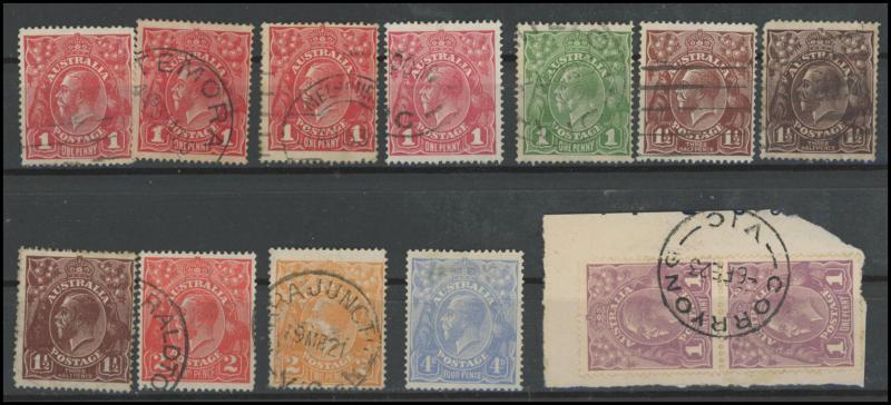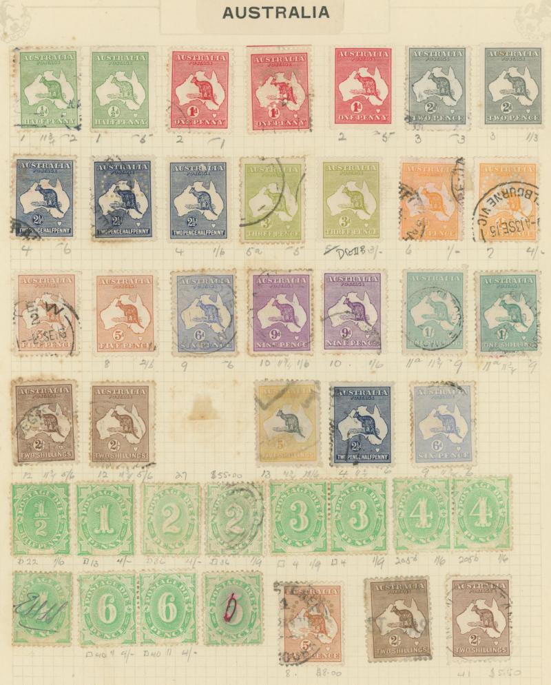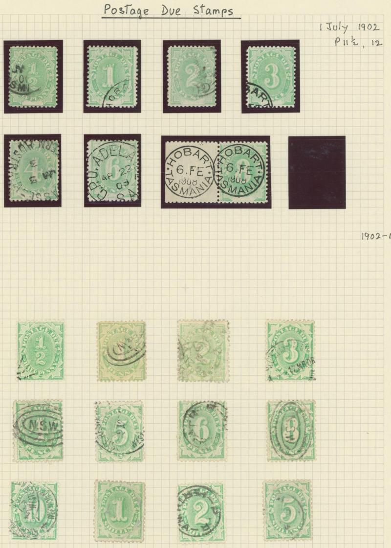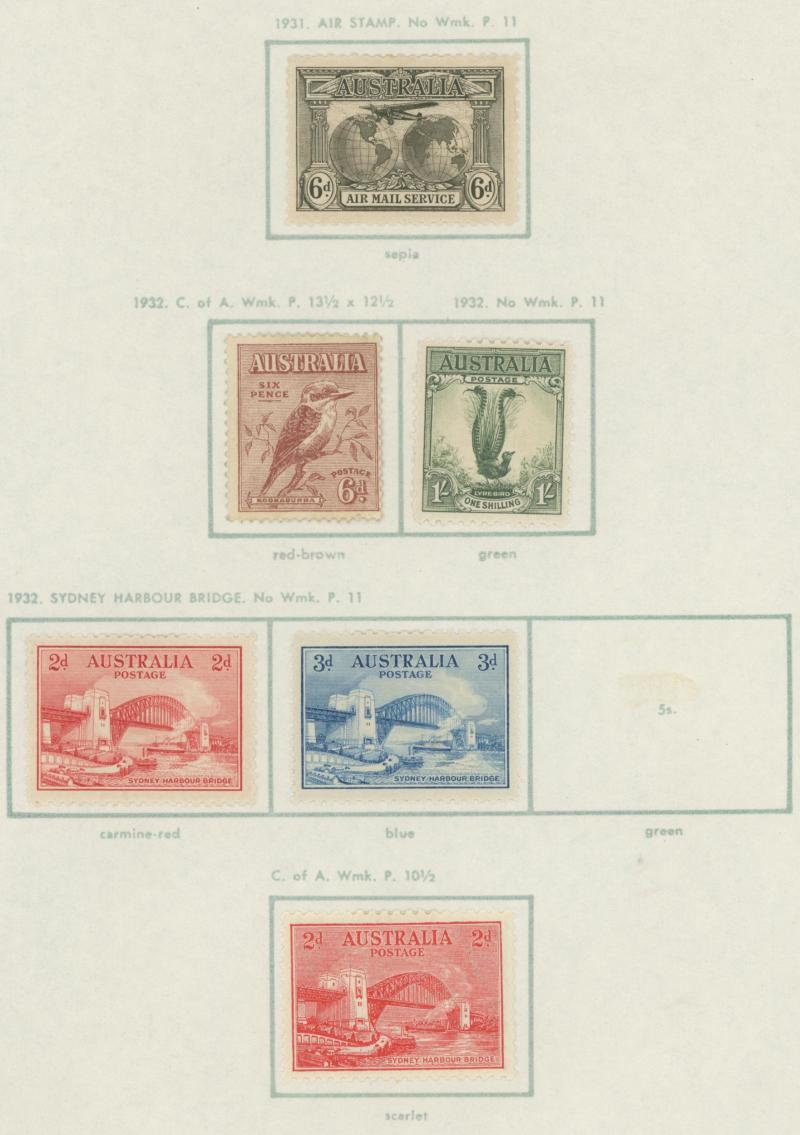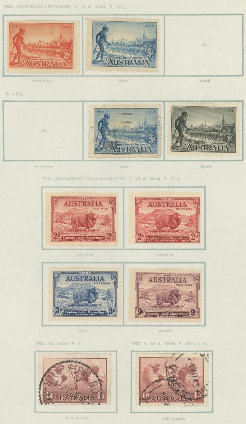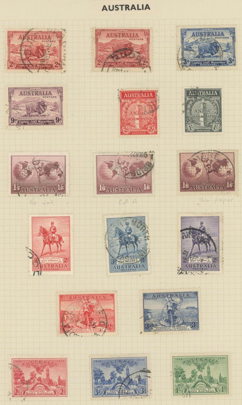 used noted Engraved 6d Kookaburra * & used, KGV Commemoratives range to 2/- (no 5/- Bridge), a few Postage Dues, the later issues to 1970s incomplete, potential for further varieties to be found, definite postmark interest especially amongst the