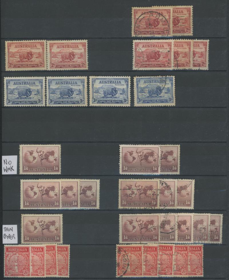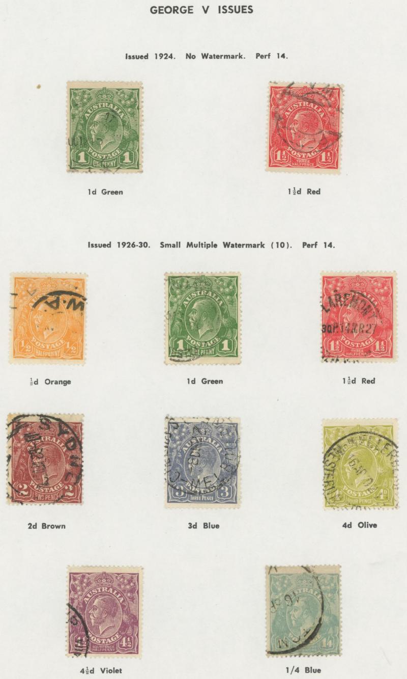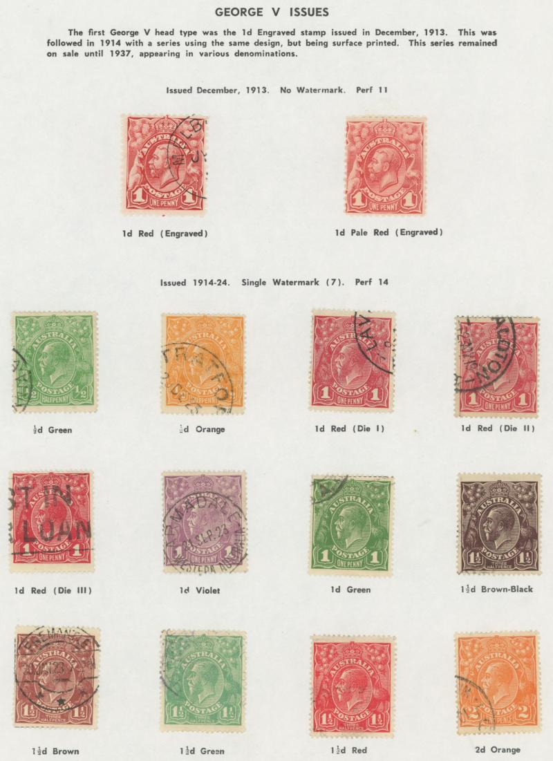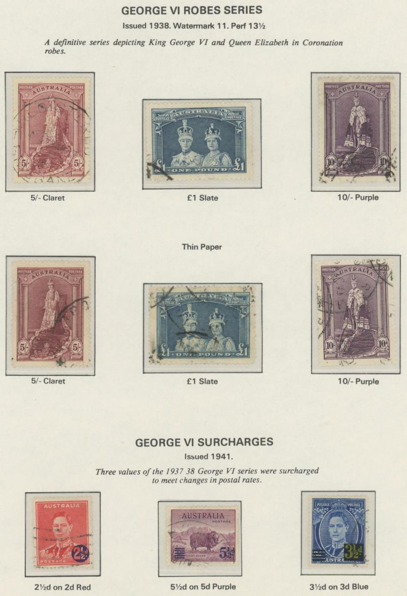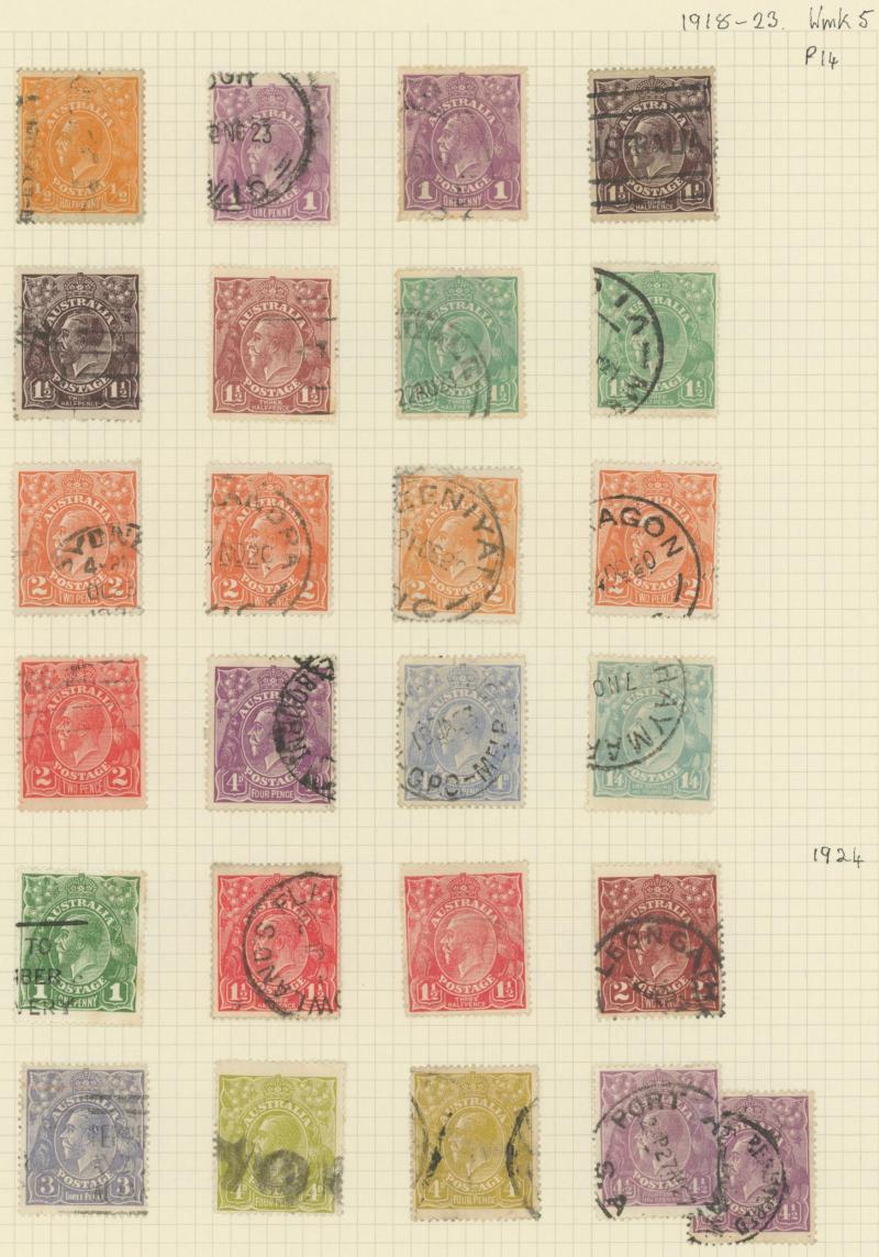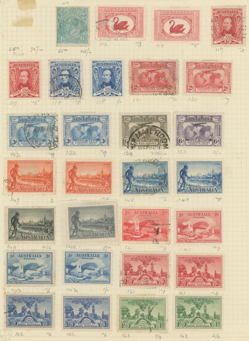 used noted Engraved 6d Kookaburra * & used, KGV Commemoratives range to 2/- (no 5/- Bridge), a few Postage Dues, the later issues to 1970s incomplete, potential for further varieties to be found, definite postmark interest especially amongst the