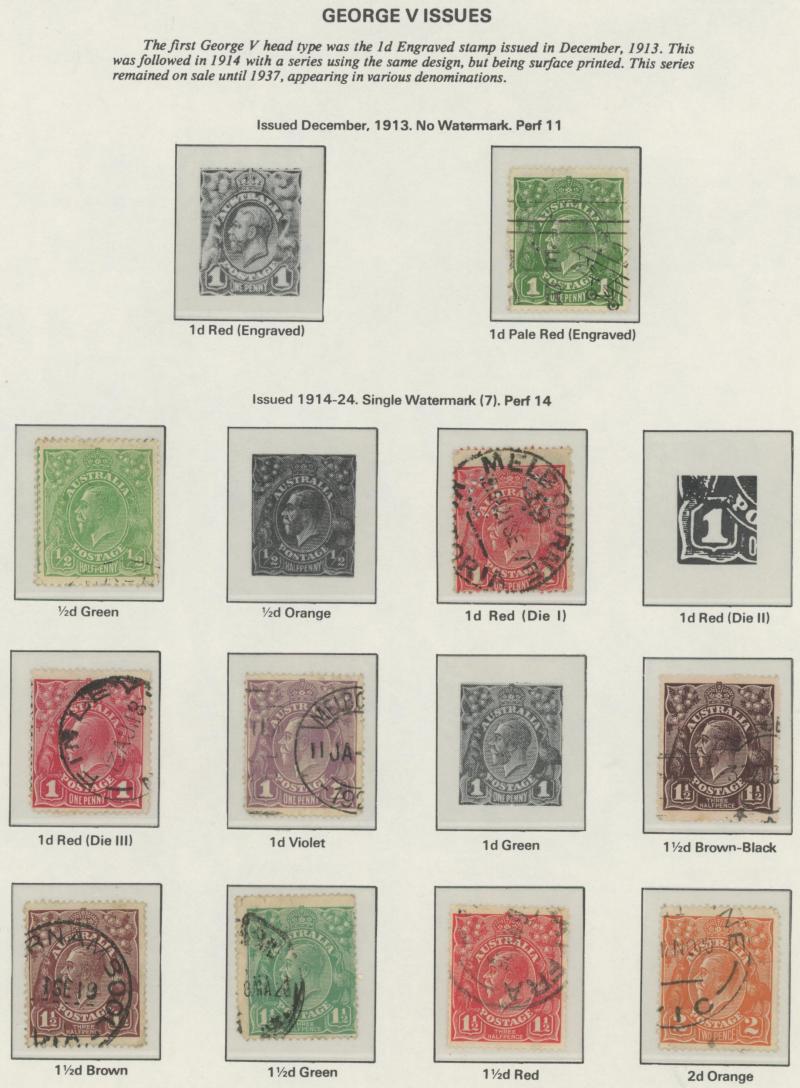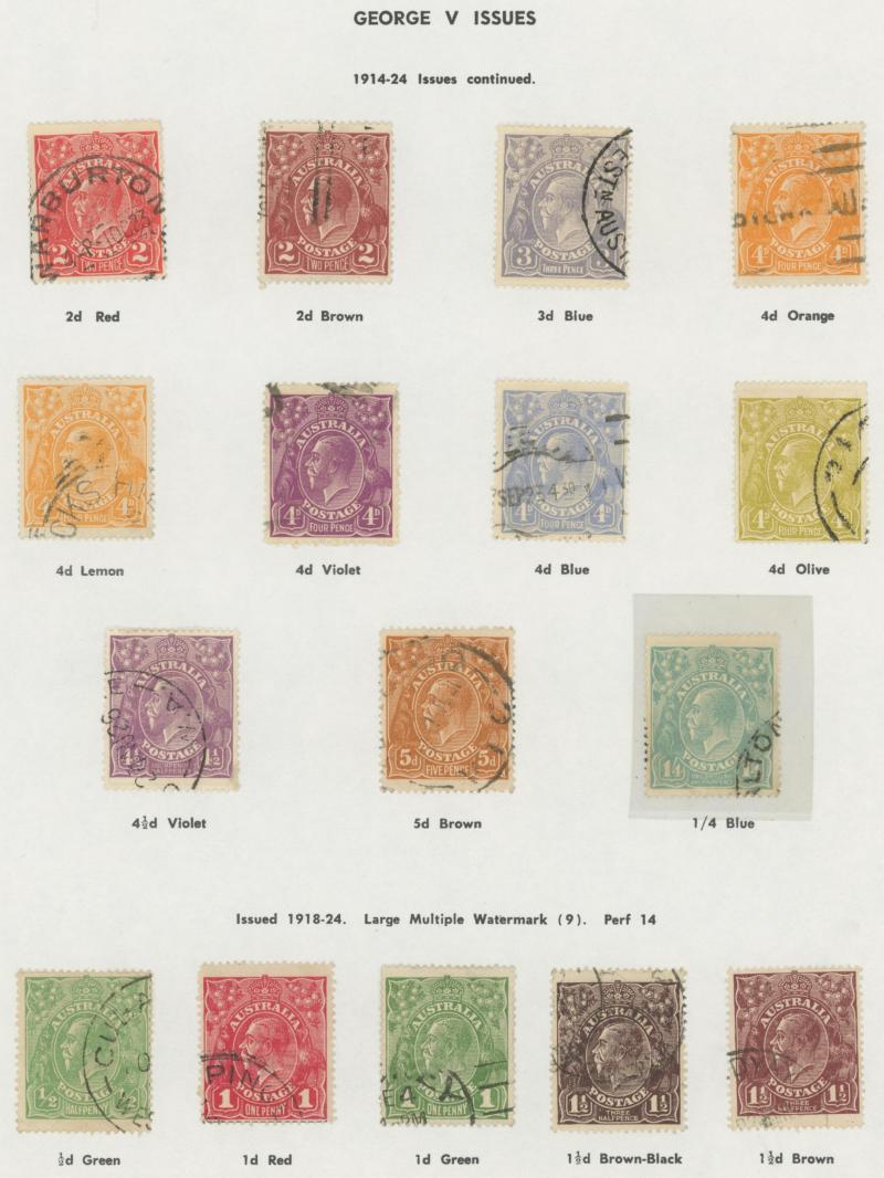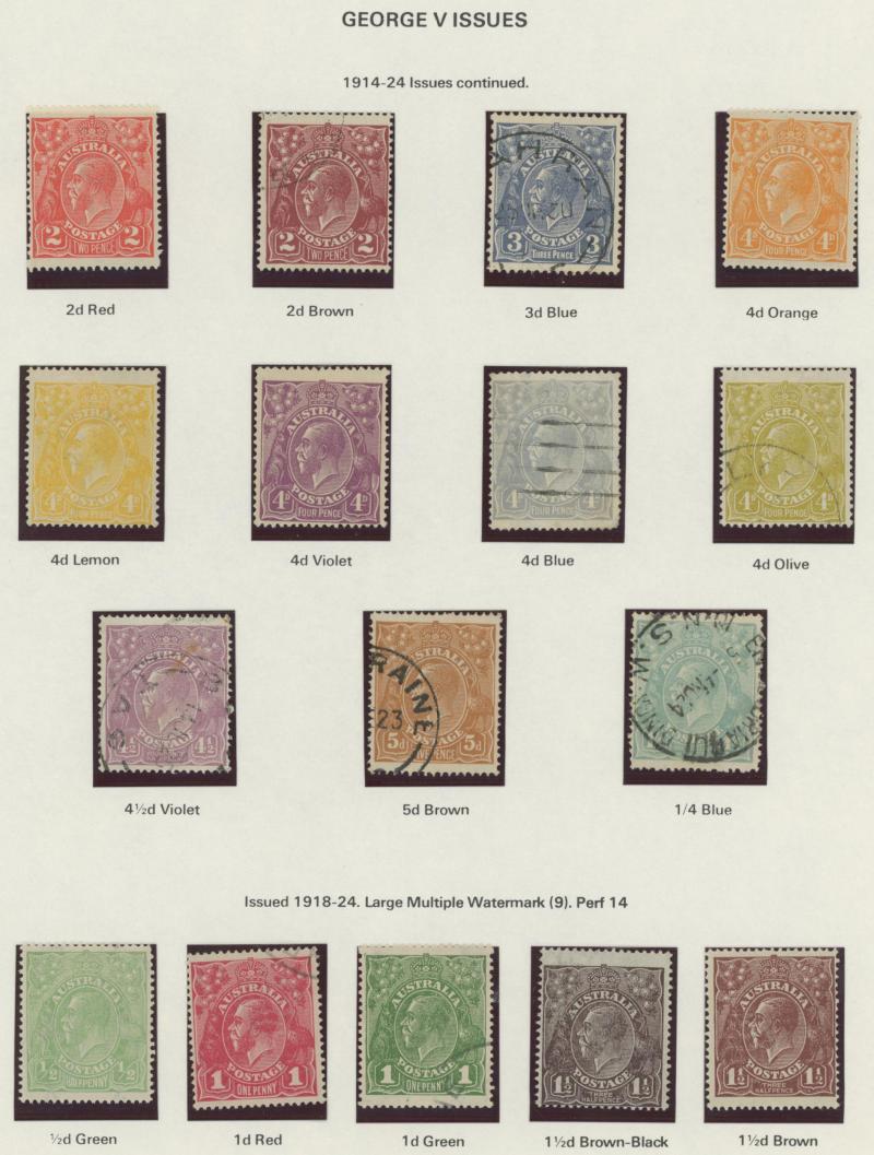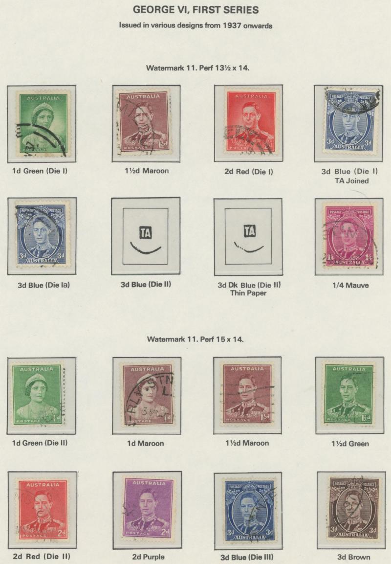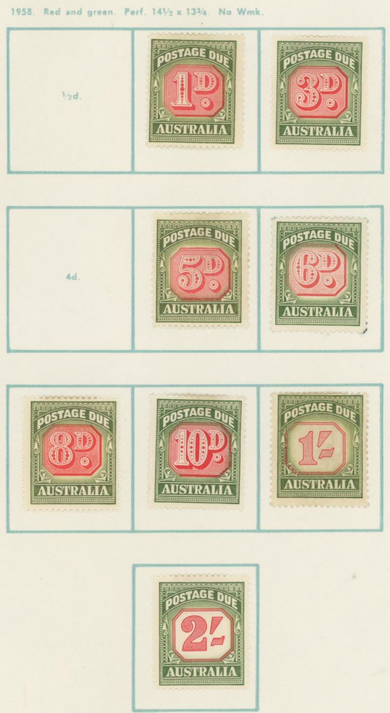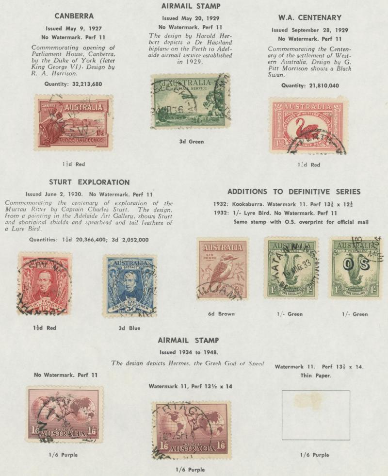 used noted Engraved 6d Kookaburra * & used, KGV Commemoratives range to 2/- (no 5/- Bridge), a few Postage Dues, the later issues to 1970s incomplete, potential for further varieties to be found, definite postmark interest especially amongst the