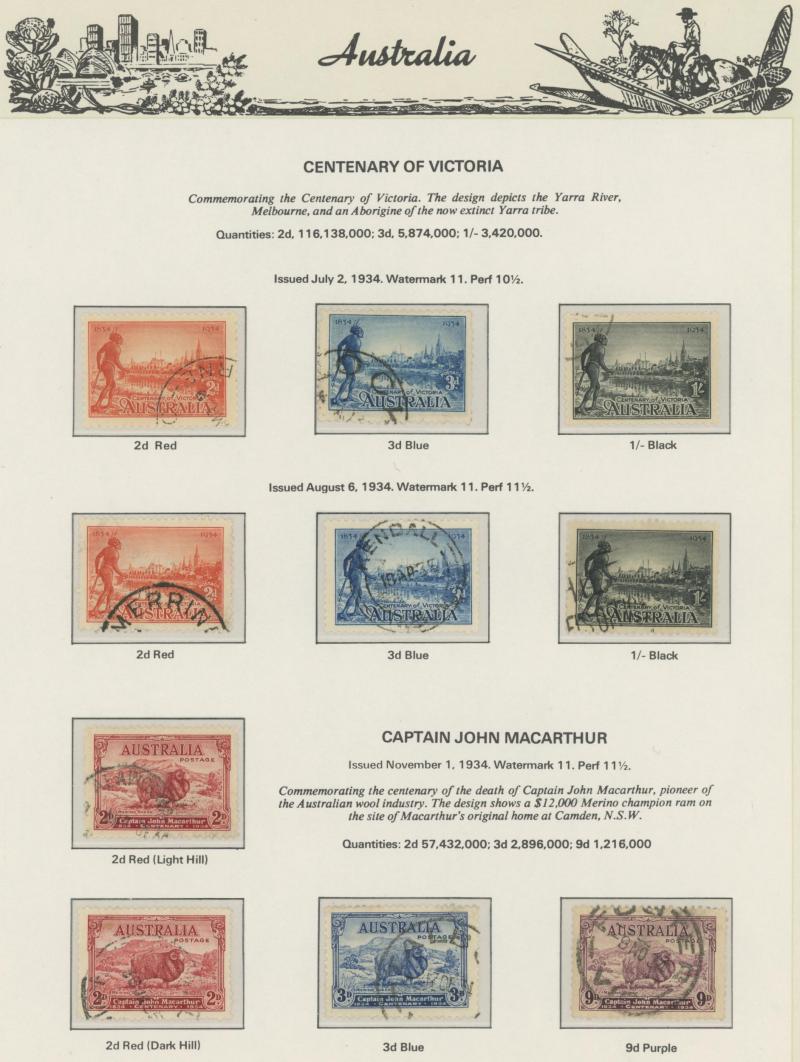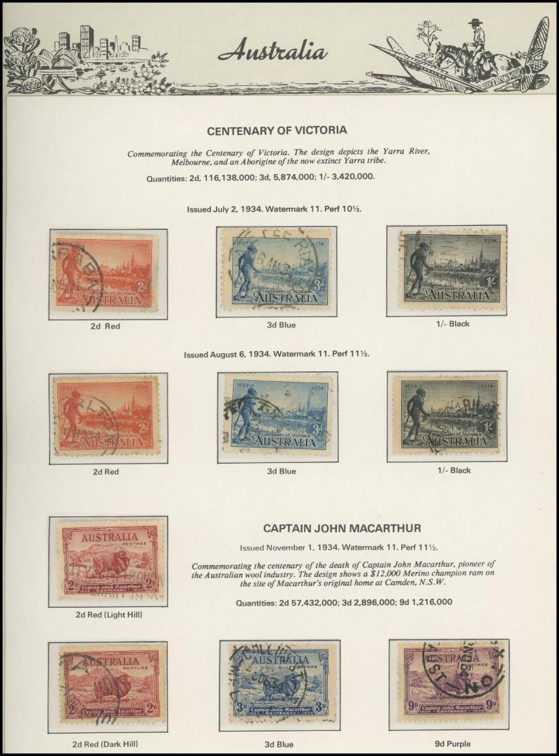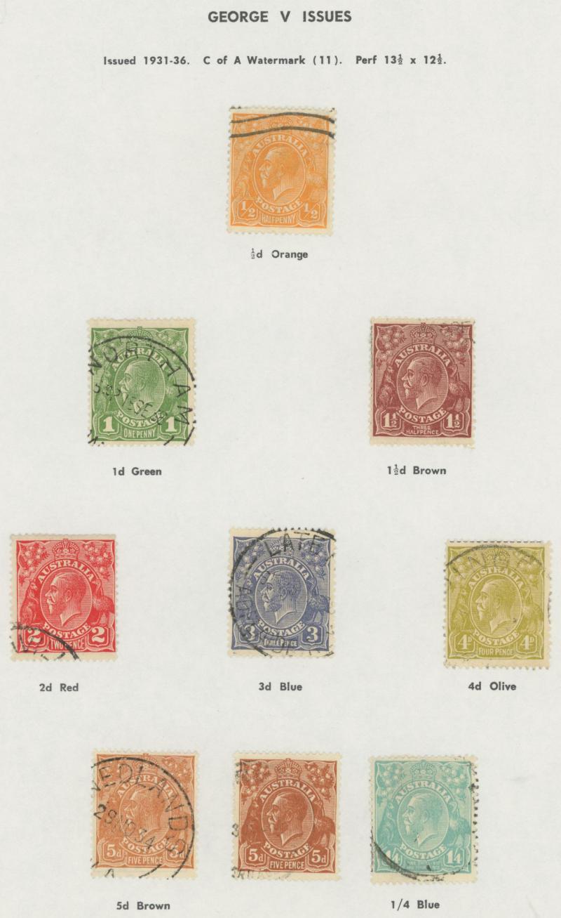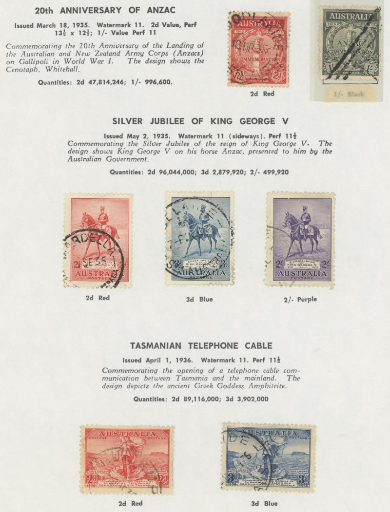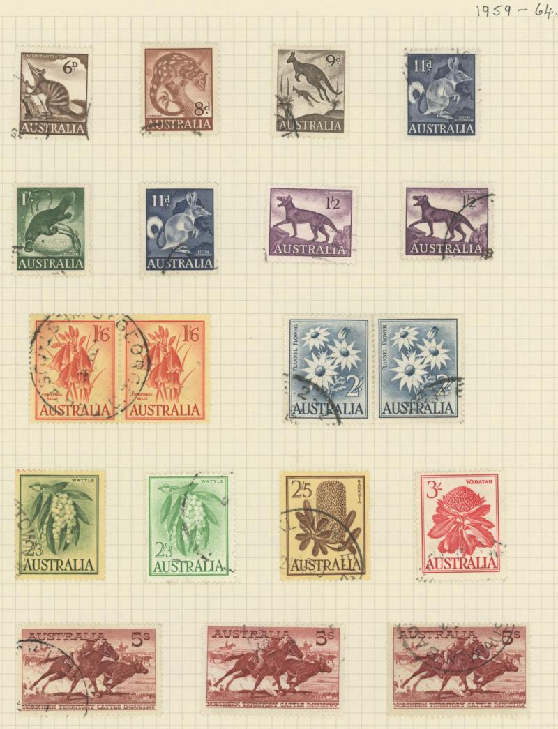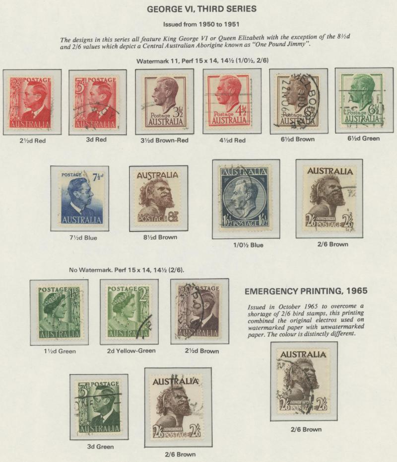 used noted Engraved 6d Kookaburra * & used, KGV Commemoratives range to 2/- (no 5/- Bridge), a few Postage Dues, the later issues to 1970s incomplete, potential for further varieties to be found, definite postmark interest especially amongst the
