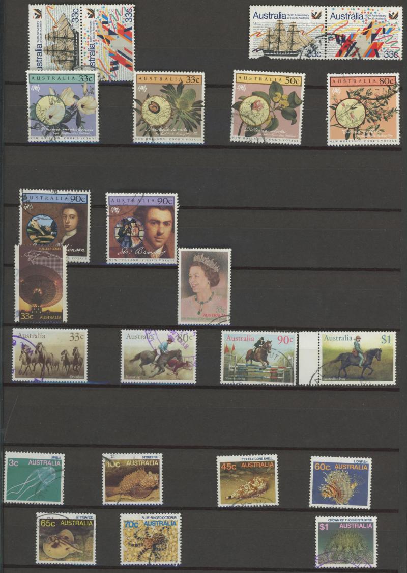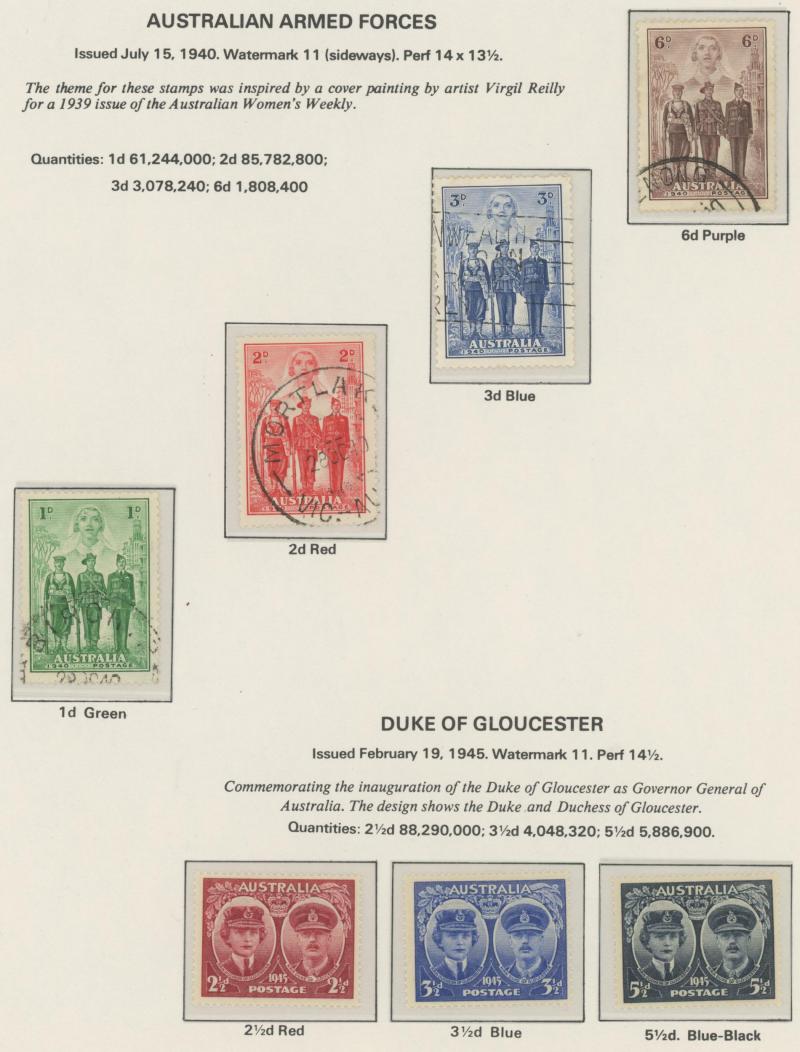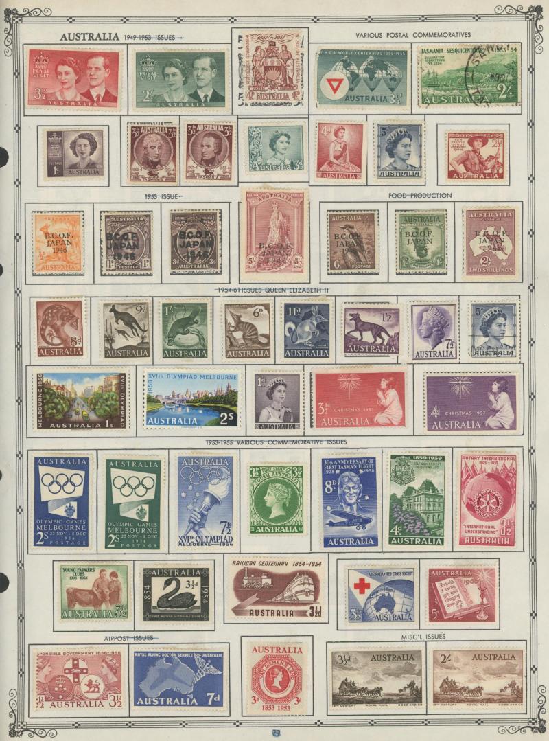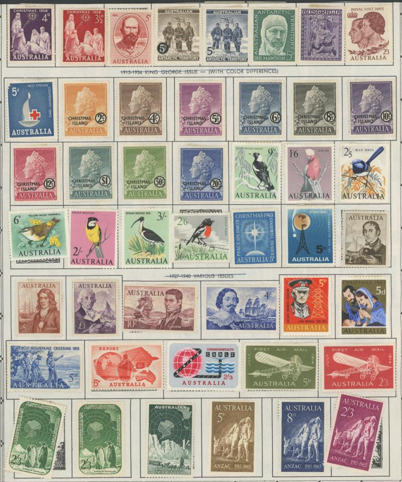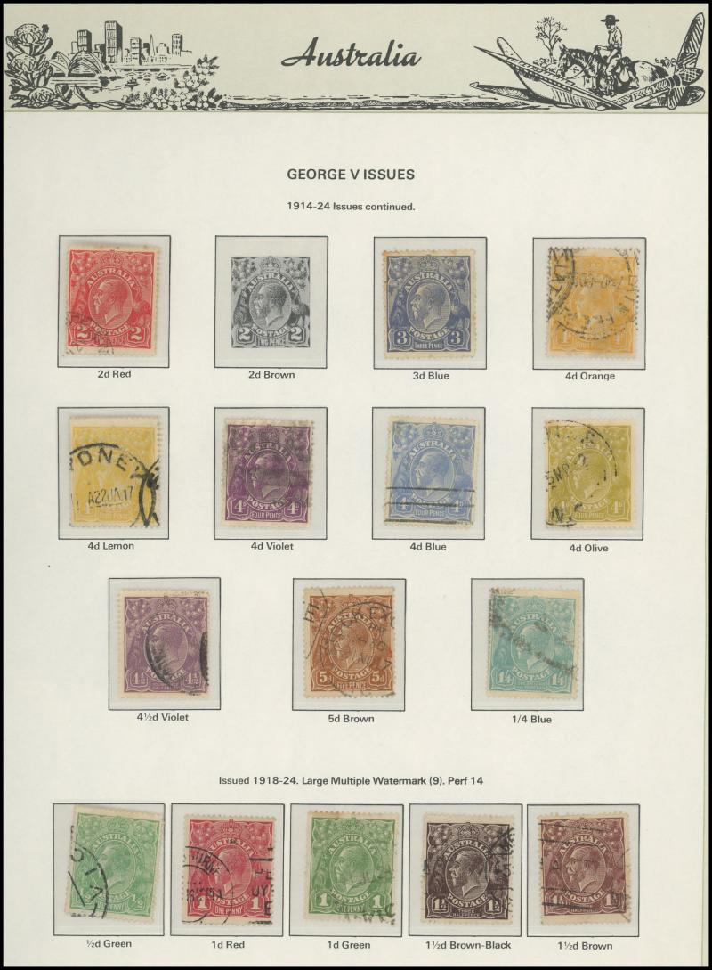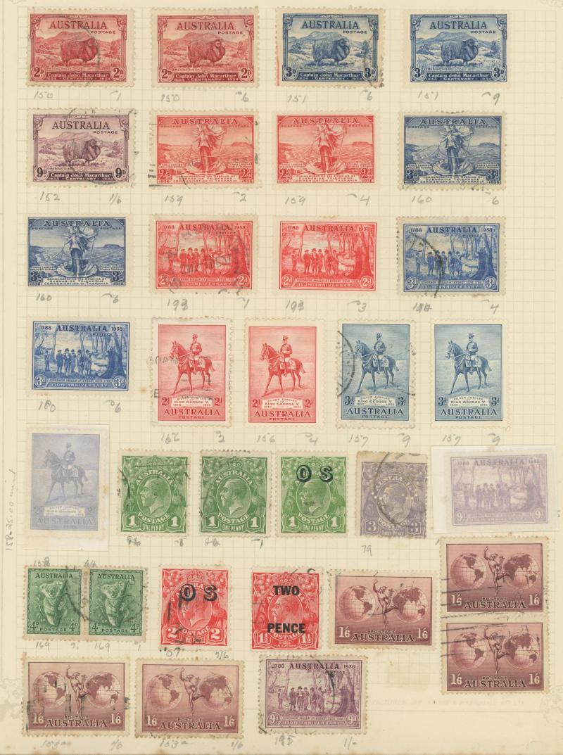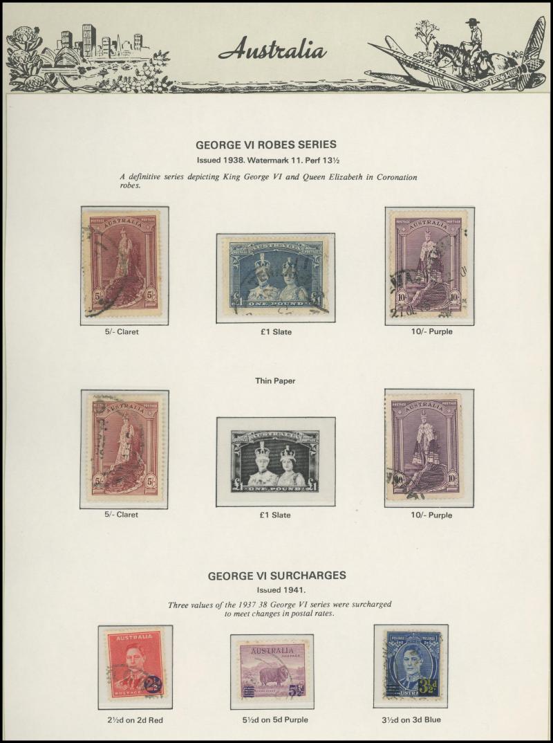closed tears), KGV Heads reasonably complete used including 'OS' overprints, Kookaburra M/S ** (minor gum discolouration), KGV Commemoratives reasonably complete including 5/- Bridge CTO & 1/- Lyrebird 'OS' overprint, KGVI & QEII similar (ex