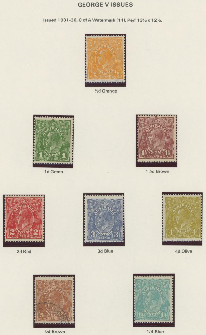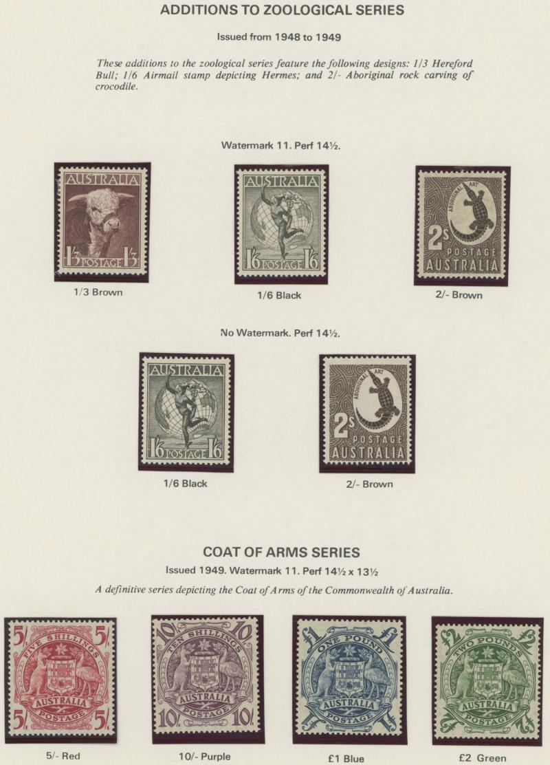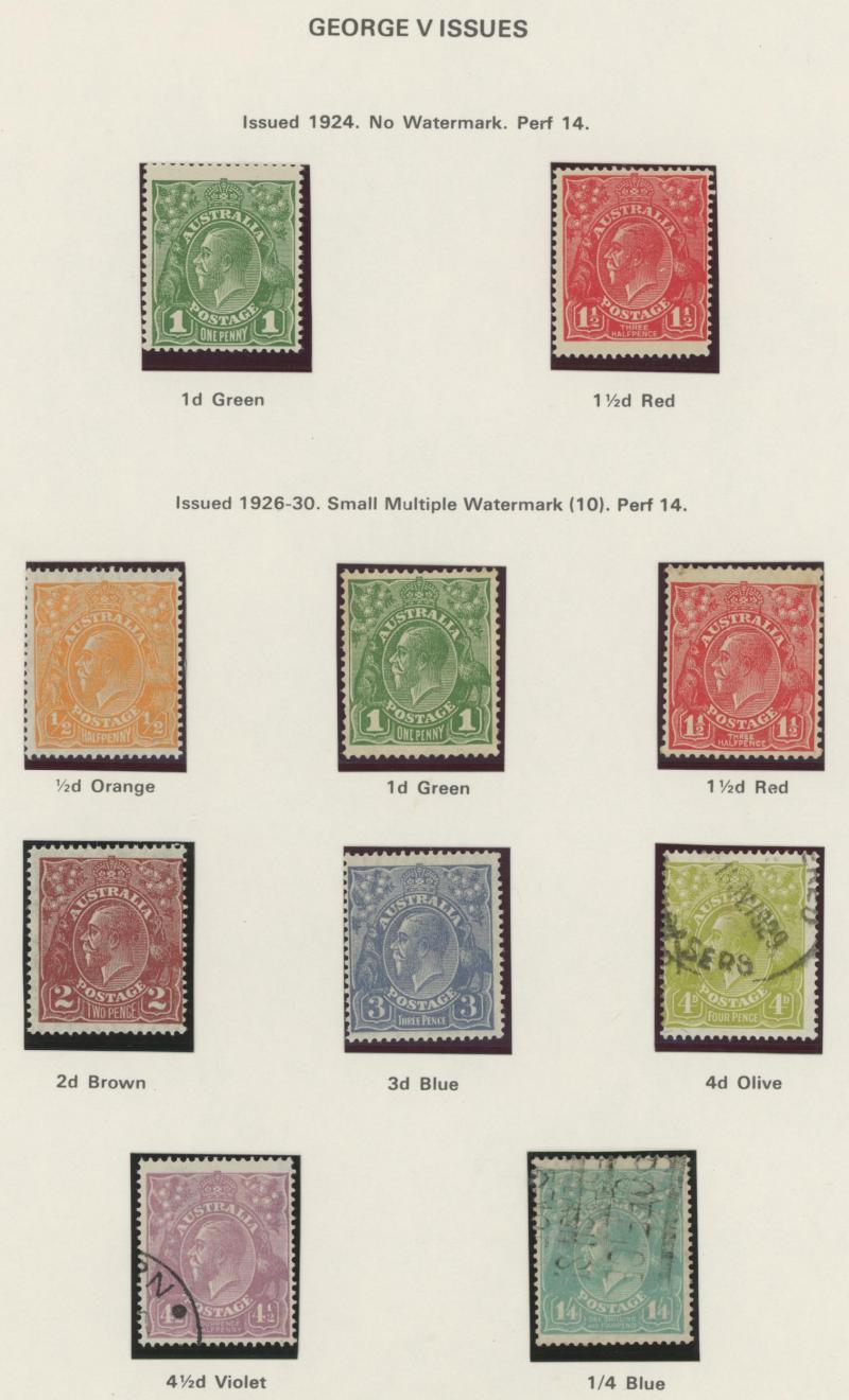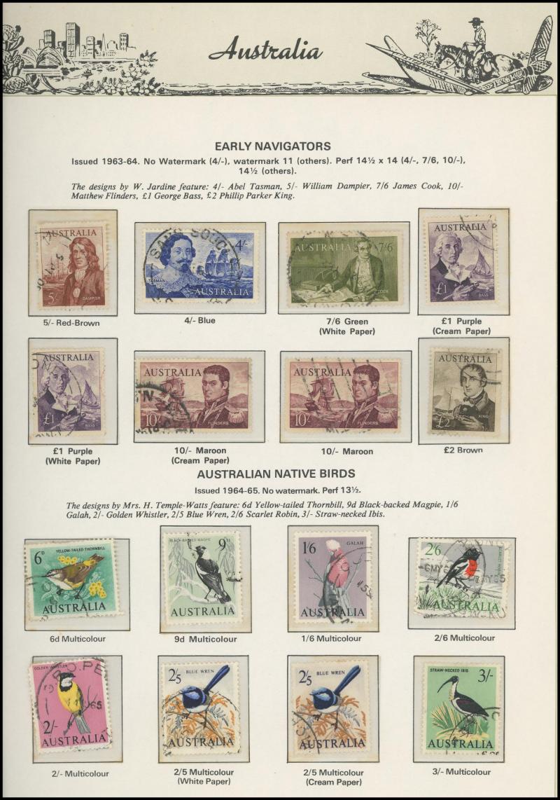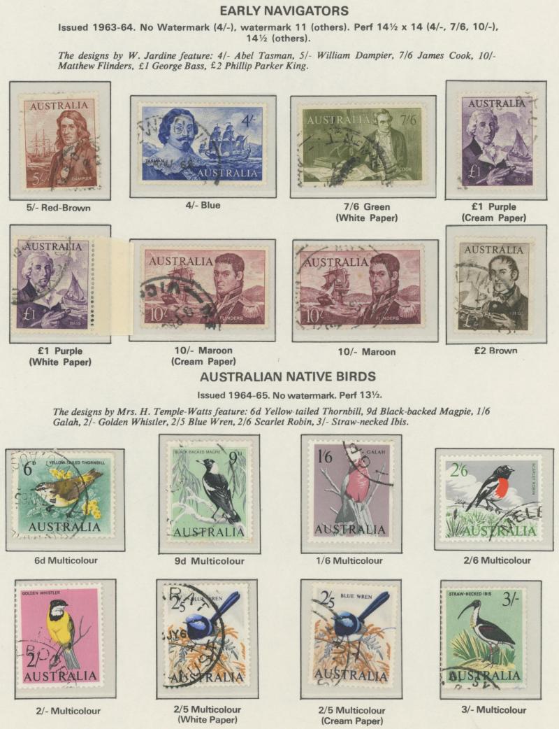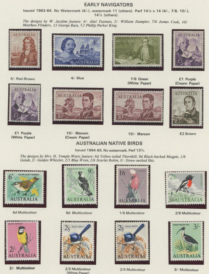 Collection predominantly used on Seven Seas pages from Kangaroos range including Third Wmk to 5/- and CofA Wmk £1 & £2 (both with