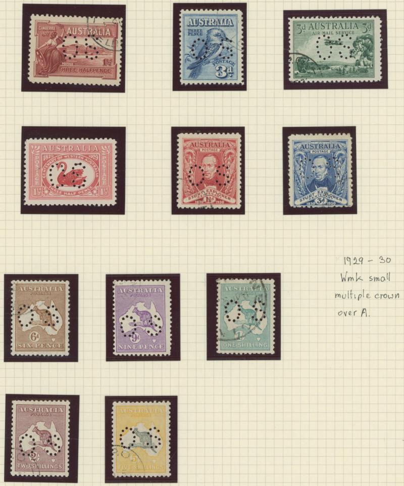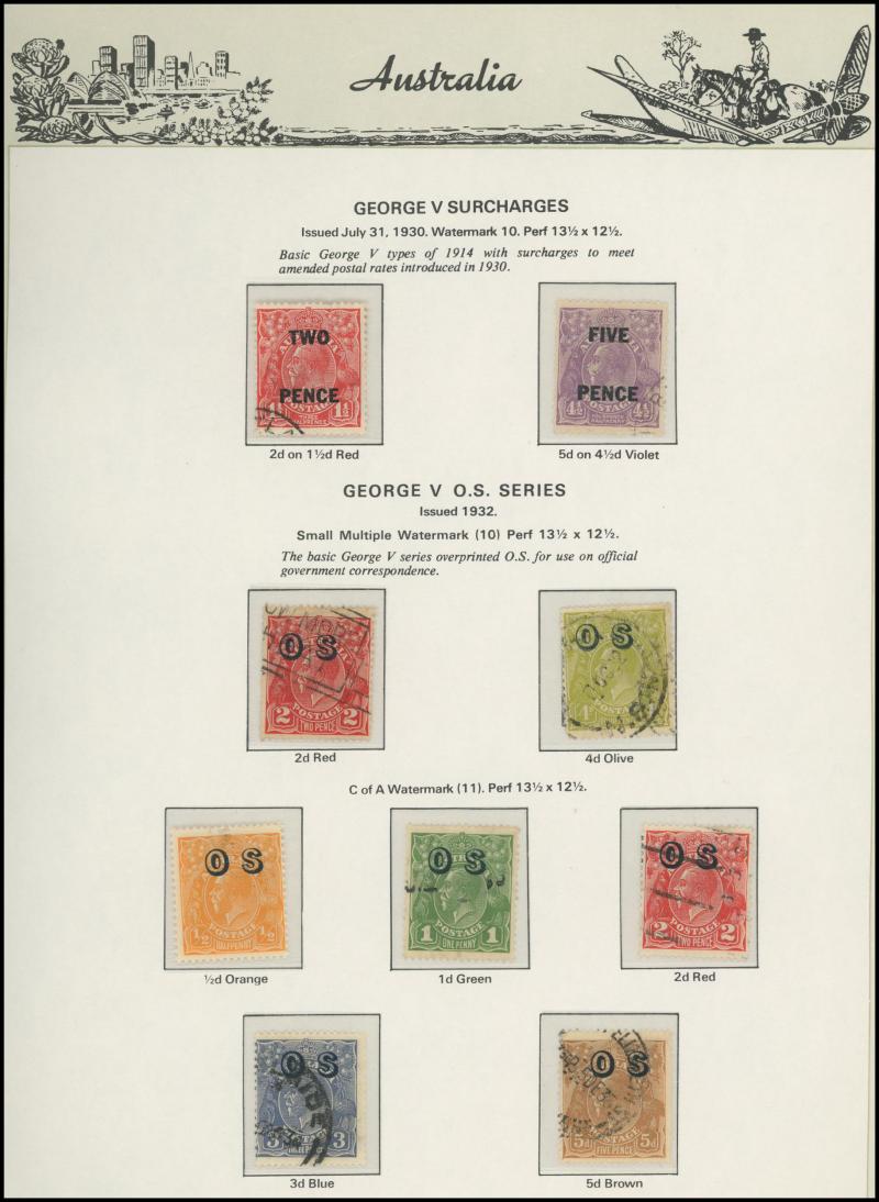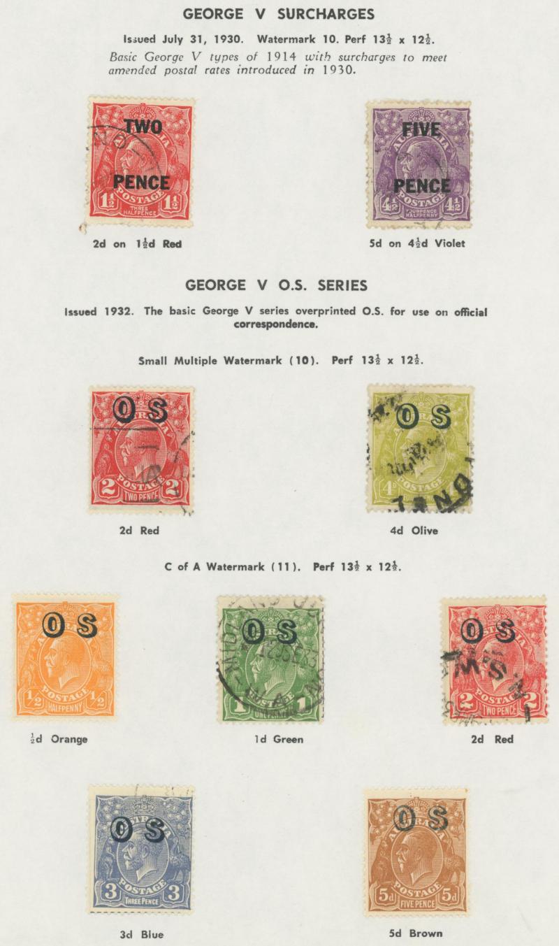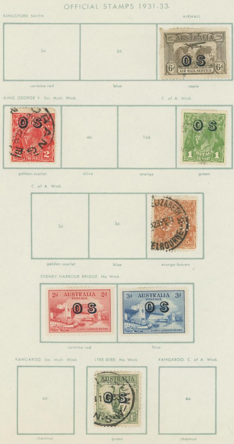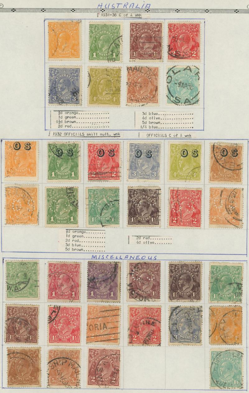 punctured 'OS' used, then Kangaroos range to First Wmk 5/-, Second Wmk 5/- & Third Wmk 5/- used, KGV Heads including 5d Rough Paper chestnut punctured 'OS', Single Wmk 4d orange x2, 4d lemon, 4d blue Inverted Watermark & 1/4d blue all * plus plenty