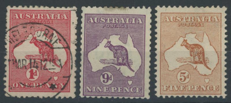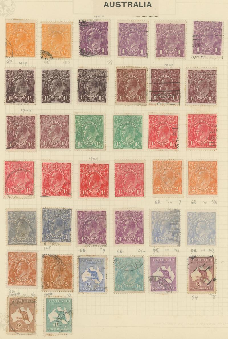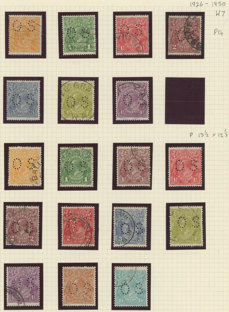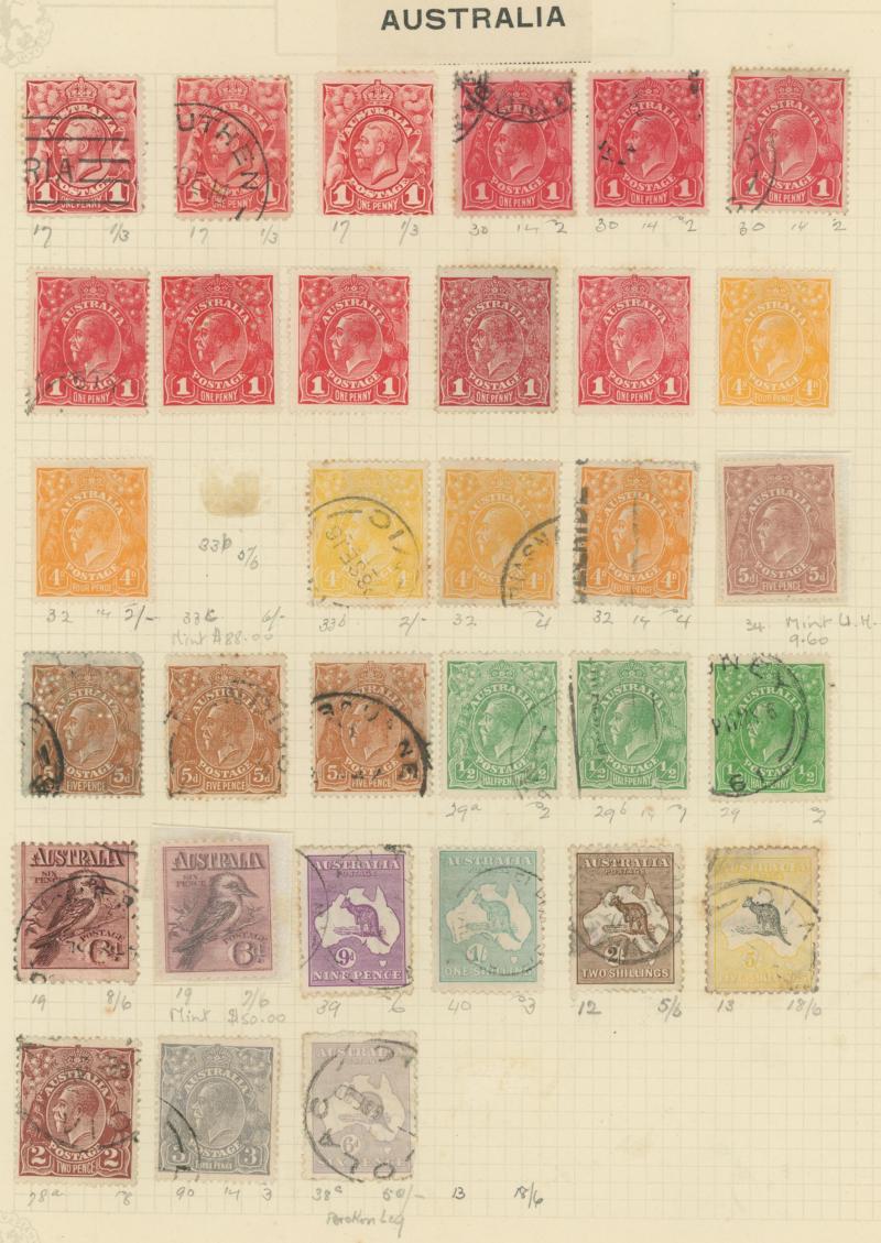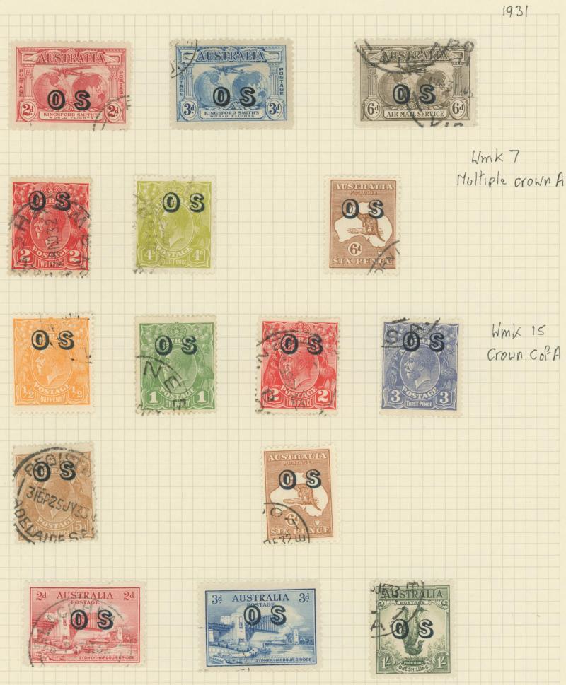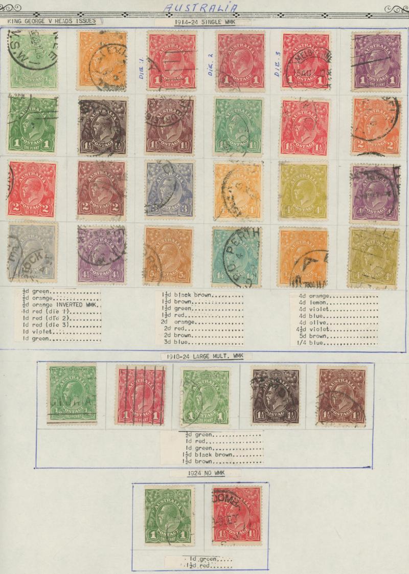 punctured 'OS' used, then Kangaroos range to First Wmk 5/-, Second Wmk 5/- & Third Wmk 5/- used, KGV Heads including 5d Rough Paper chestnut punctured 'OS', Single Wmk 4d orange x2, 4d lemon, 4d blue Inverted Watermark & 1/4d blue all * plus plenty
