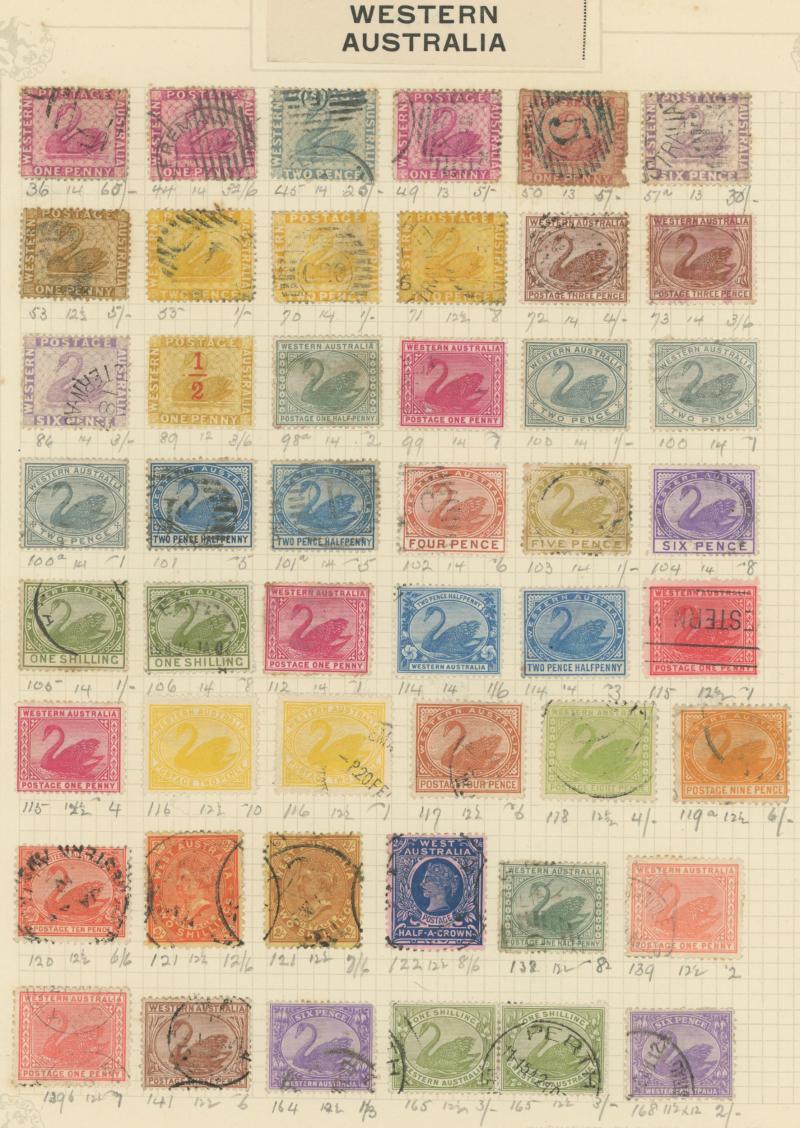 2d x2 & 3d x5 in rather mixed condition then decent ranges of Emblems & Laureates, a few Postal Fiscals, 1897 Charity duo used plus 1d *, 1900 Boer War duo *, KEVII £1 used, and Postage Dues to 2/-, Western Australia to QV 2/6d used plus 2/6d