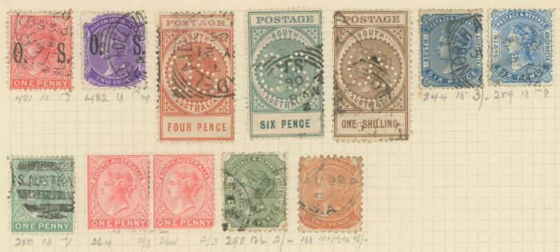 Registered imperf & perf x2, Tall Revenues 'POSTAGE' 10/-, Governors 20/-, Consumptive Homes duo * plus 1/- used, also 'OS' overprints & punctures, Queensland with a few QV Chalons, South Australia from QV Perkins Bacon imperfs & roulettes plus Tall