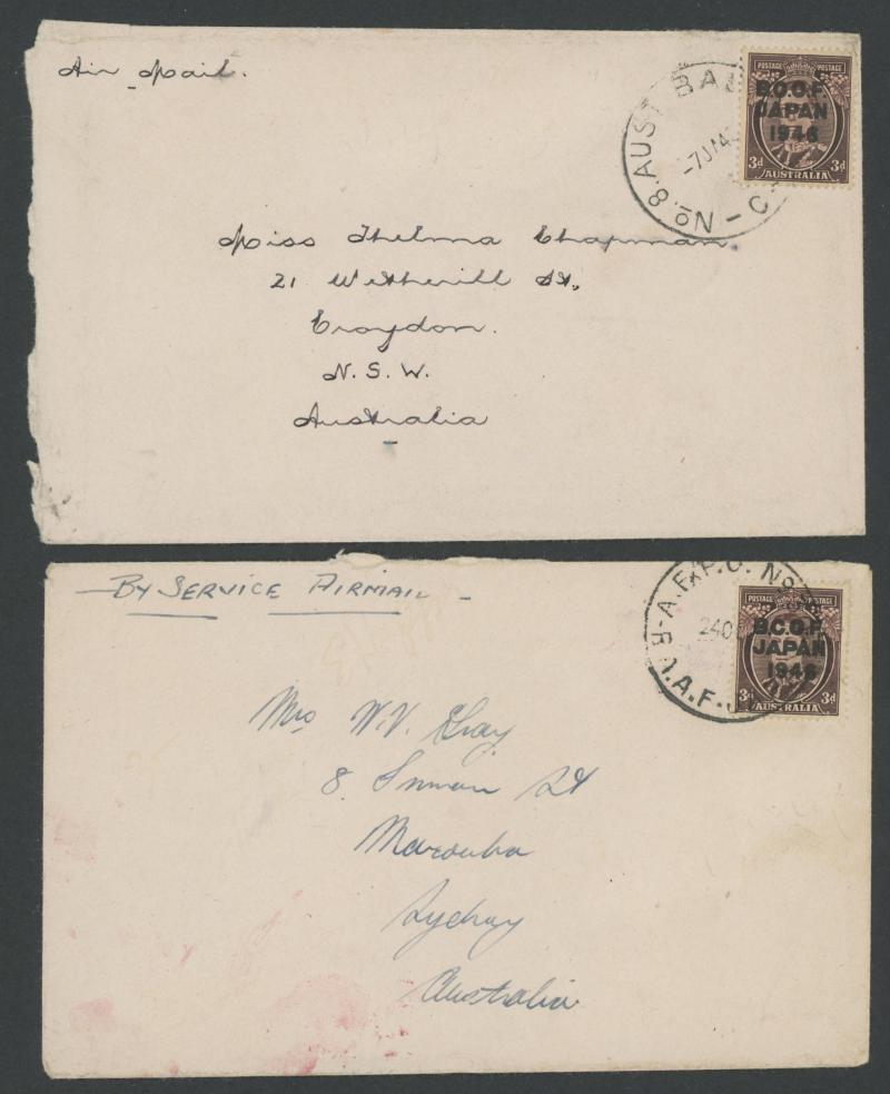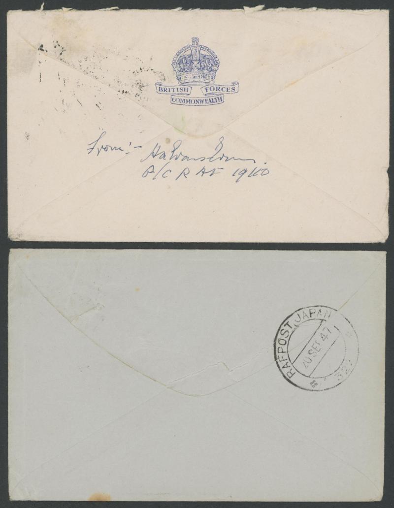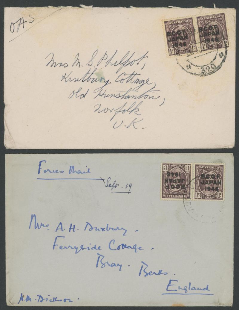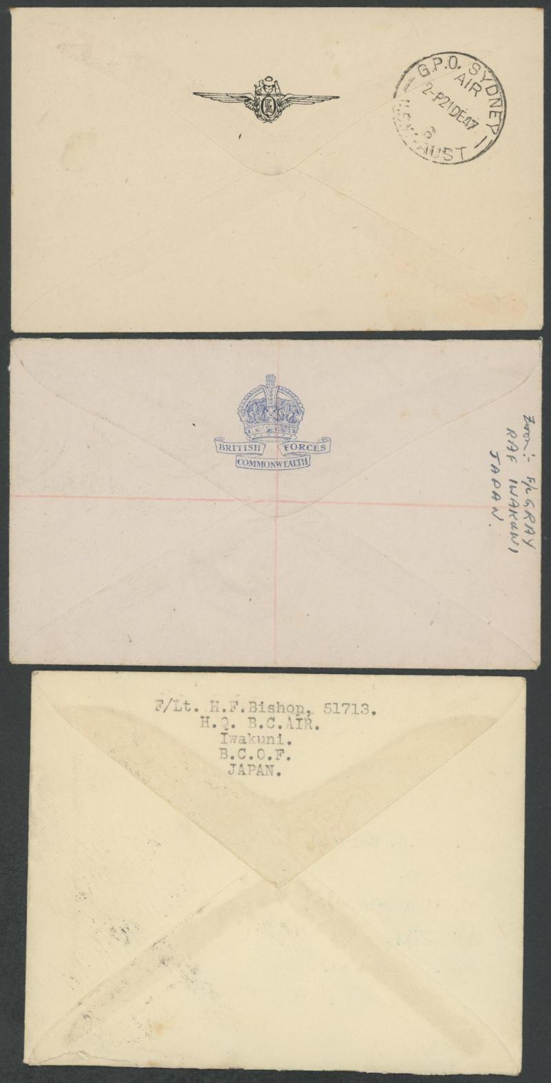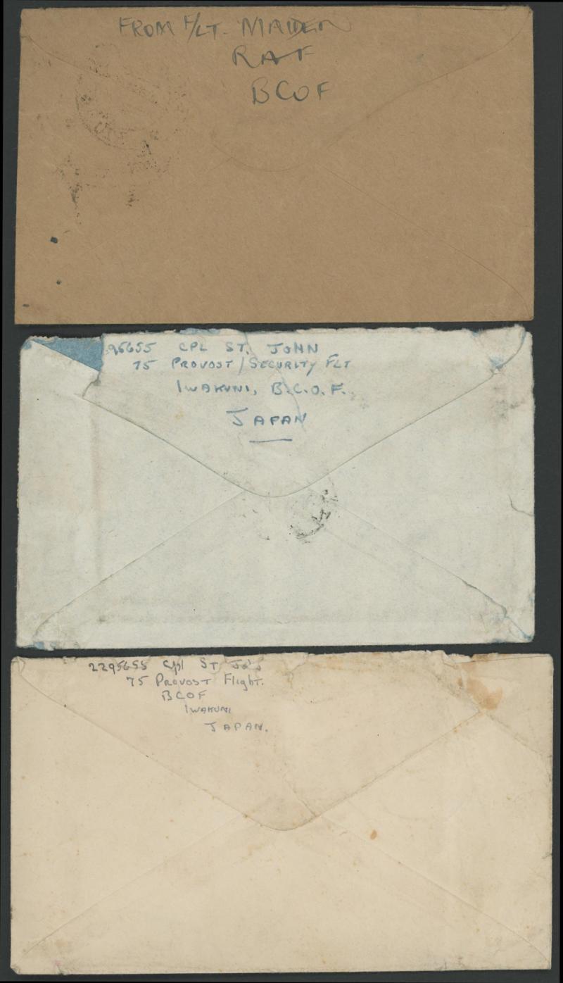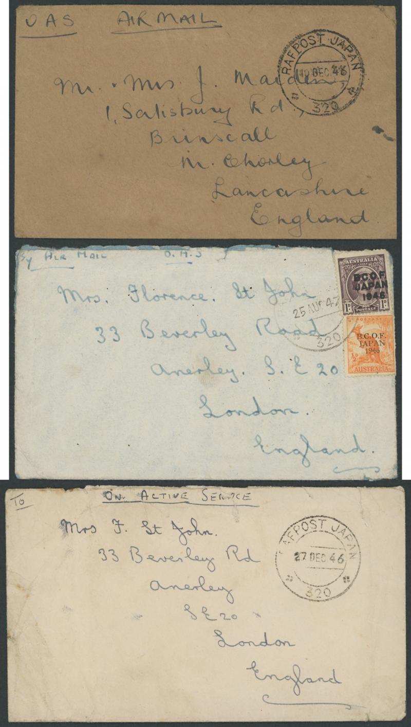 other from British Airforce serviceman "F/LT Maiden, RAF, BCOF", all with minor blemishes & transmission marks. (3) (Image1) (Image2)