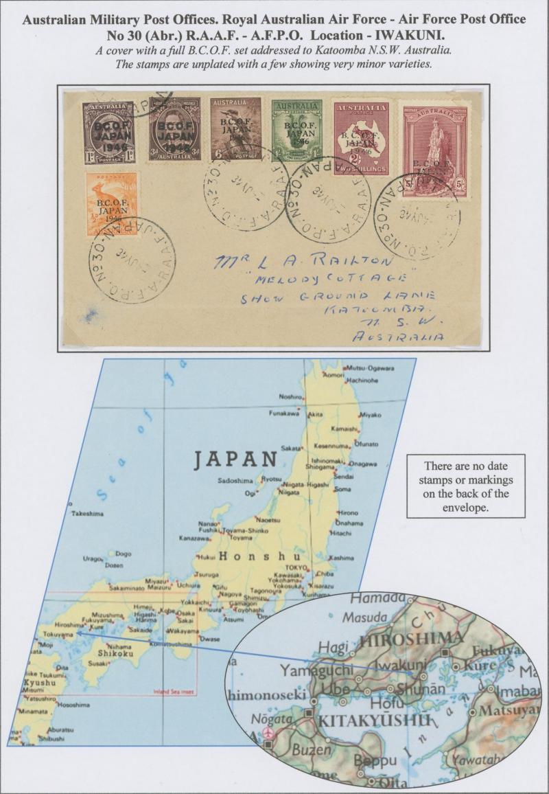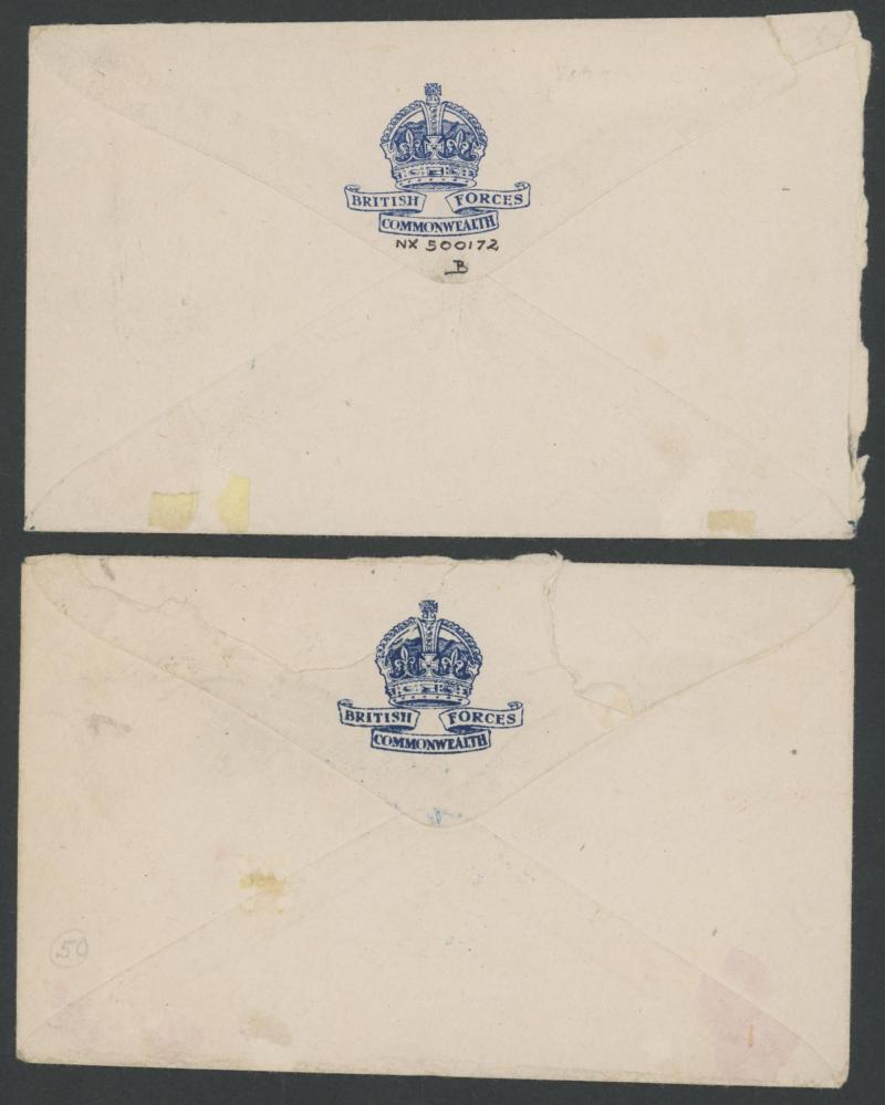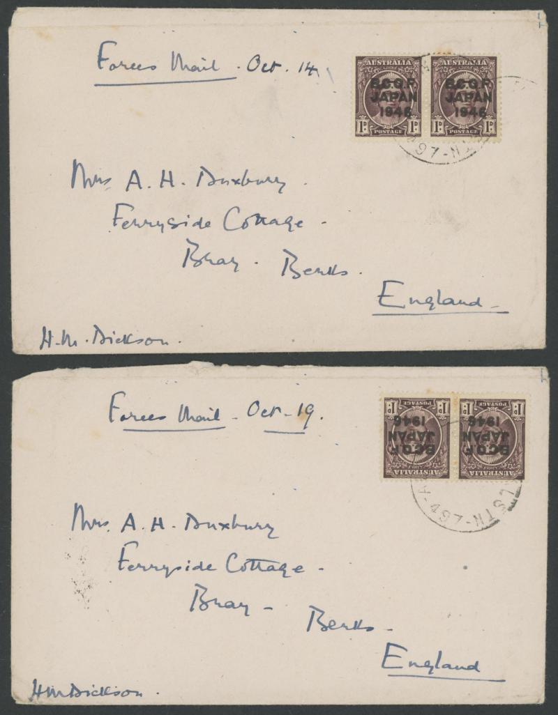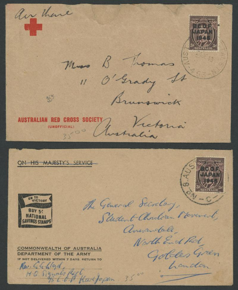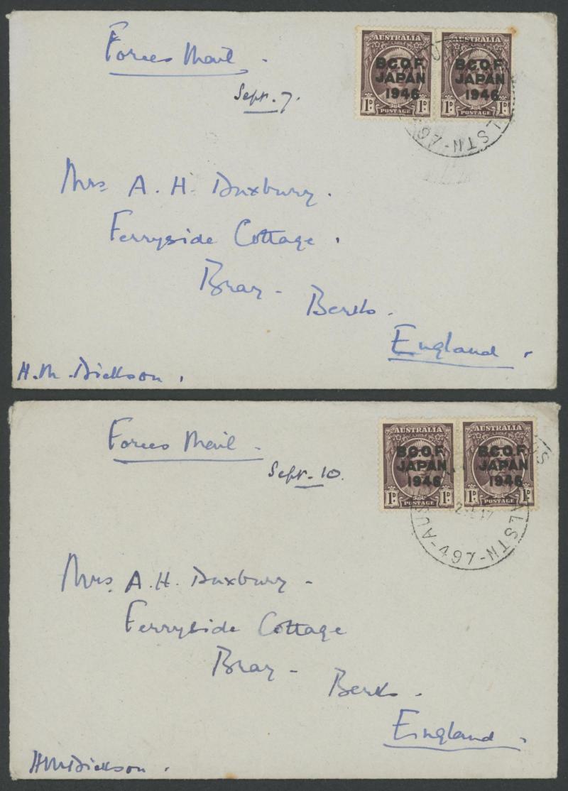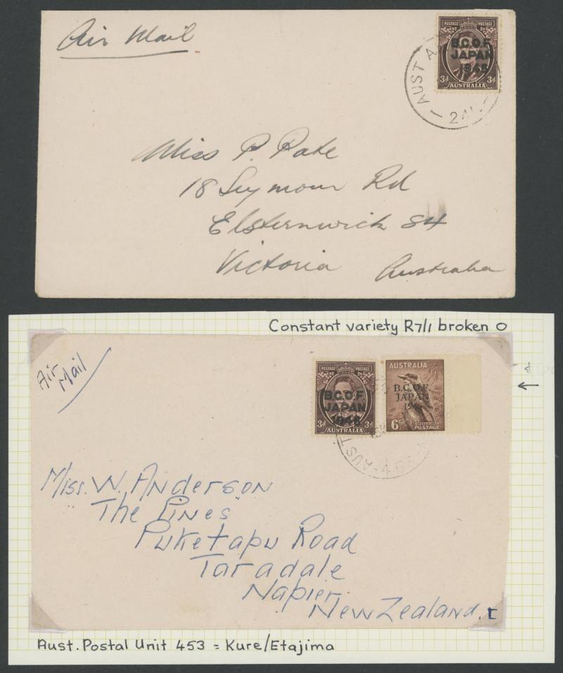 other from British Airforce serviceman "F/LT Maiden, RAF, BCOF", all with minor blemishes & transmission marks. (3) (Image1) (Image2)