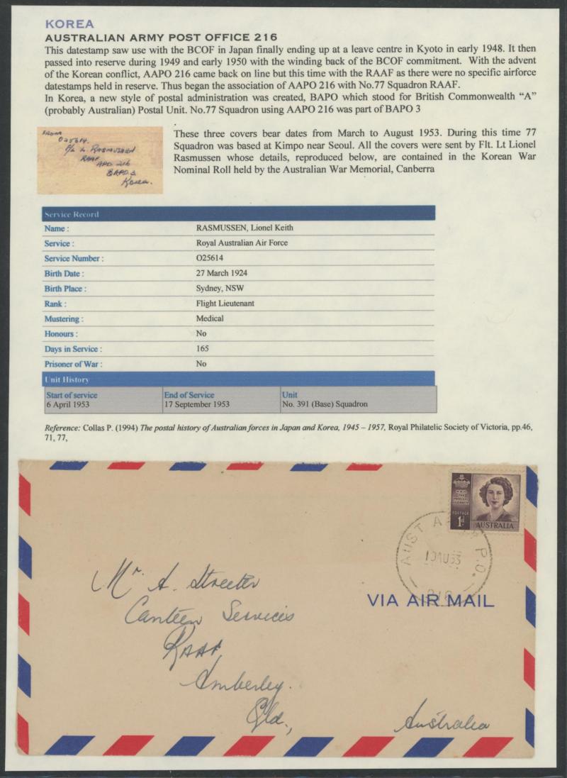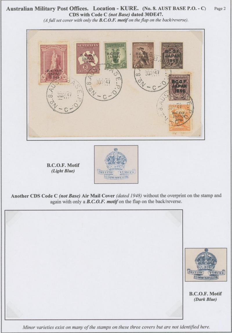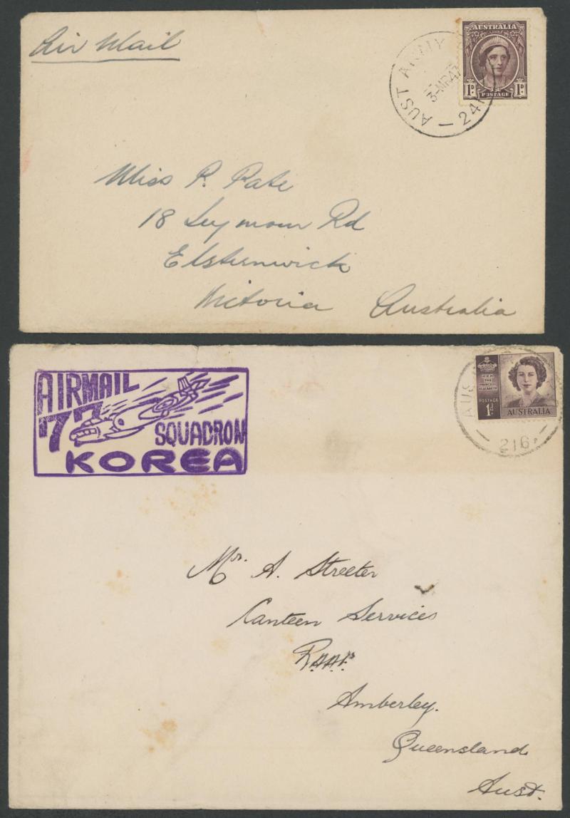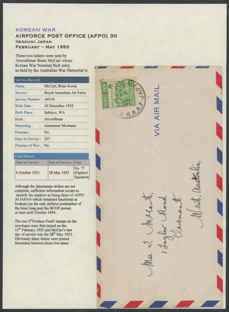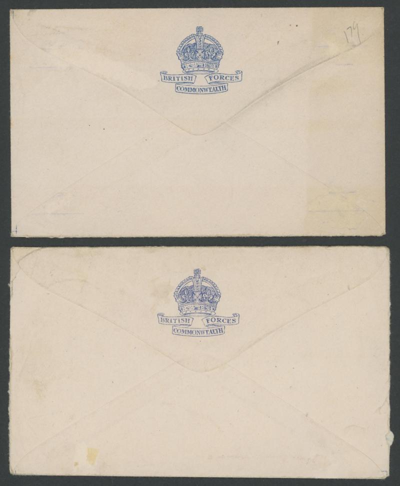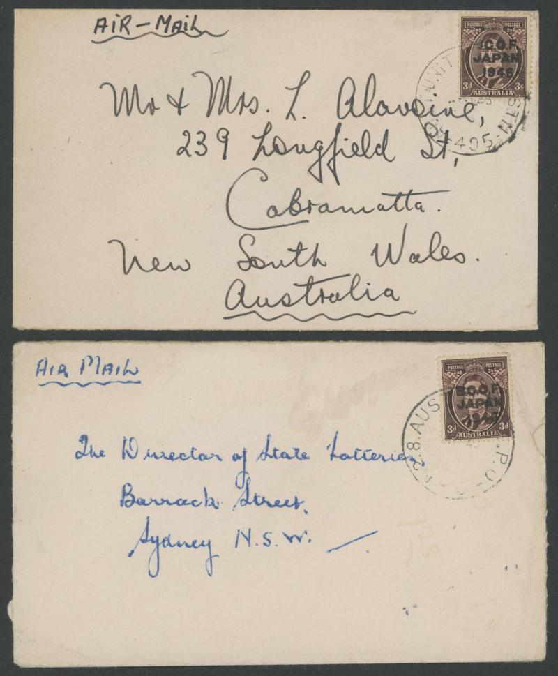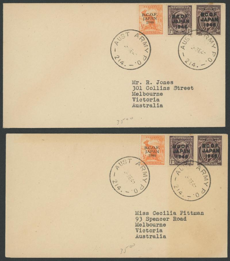 other from British Airforce serviceman "F/LT Maiden, RAF, BCOF", all with minor blemishes & transmission marks. (3) (Image1) (Image2)