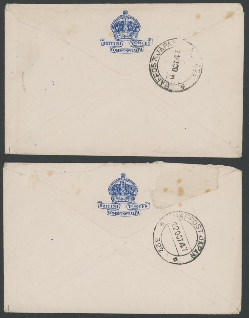 1946-47 envelopes airmail to England each endorsed 'On Active Service' or 'OAS' with 'RAFPOST JAPAN/320' Indian-Pattern cds cancels