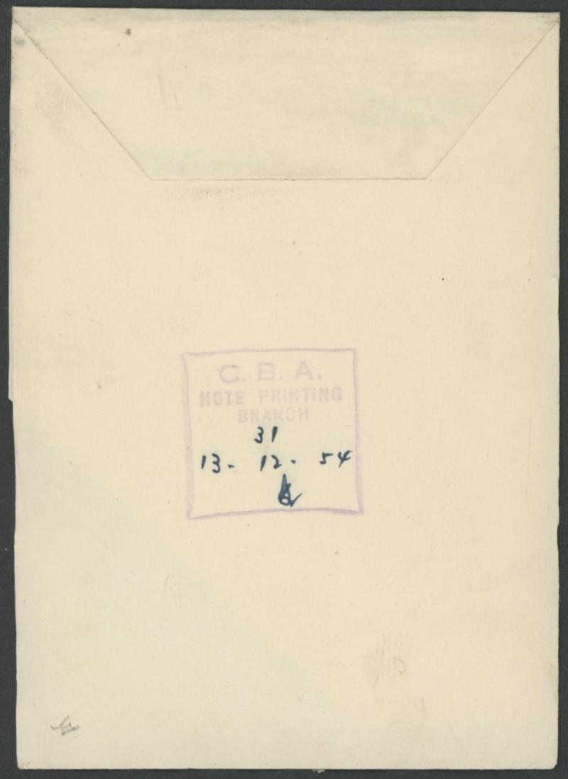 'CBA/NOTE PRINTING/BRANCH' cachet endorsed "31/13-12-54", and the plain piece used to window the proof.