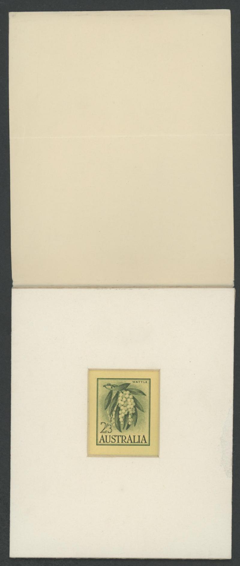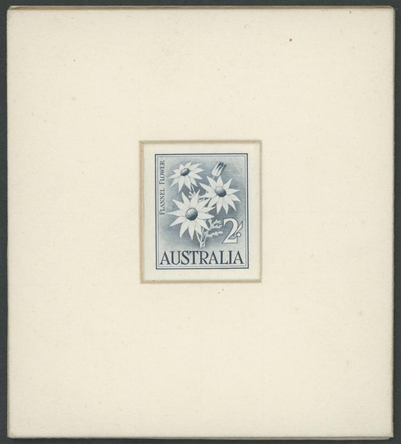 ACSC 368DP(1) with protective paper flap, Note Printing Branch handstamp on the reverse dated "6-7-59" numbered "52", small blemish on the card well clear of the proof which is very fine, Cat $2500. A beautiful proof, especially for the Flower