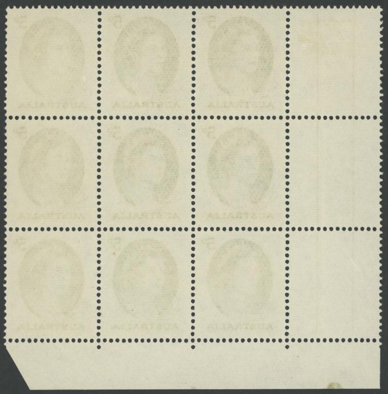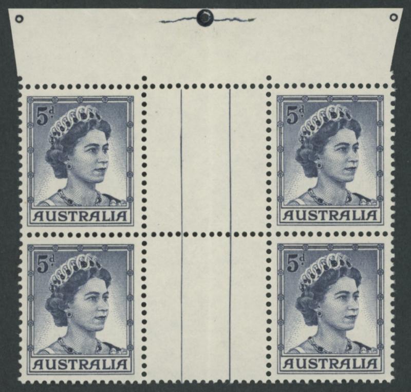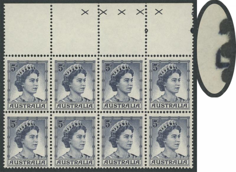 'to the right ACSC 355z, very lightly mounted, Cat $1250. [The ACSC states that this is the usual presentation of the plate number because of coil-perf sheets being split in two], short perf at lower-right (Image1) (Image2)